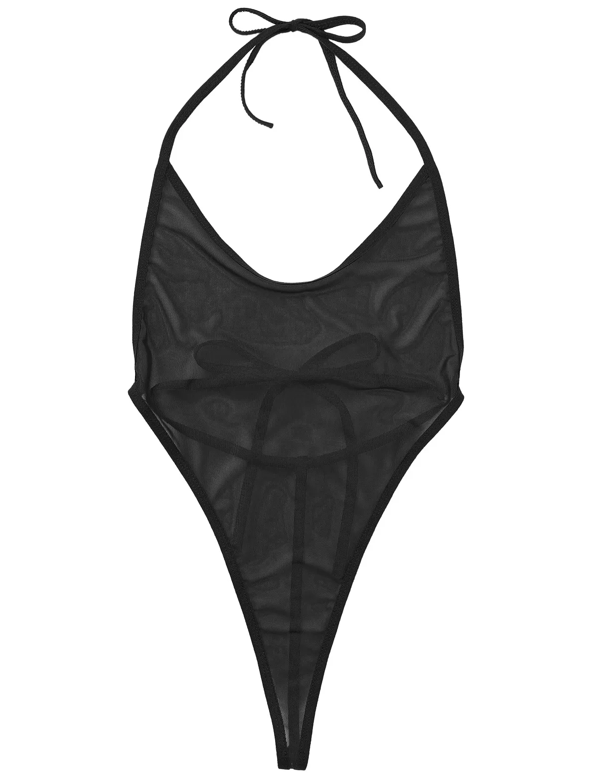 Женское прозрачное боди, Сетчатое нижнее белье, сексуальное прозрачное трико на бретельках, с открытой спиной, прозрачные бикини