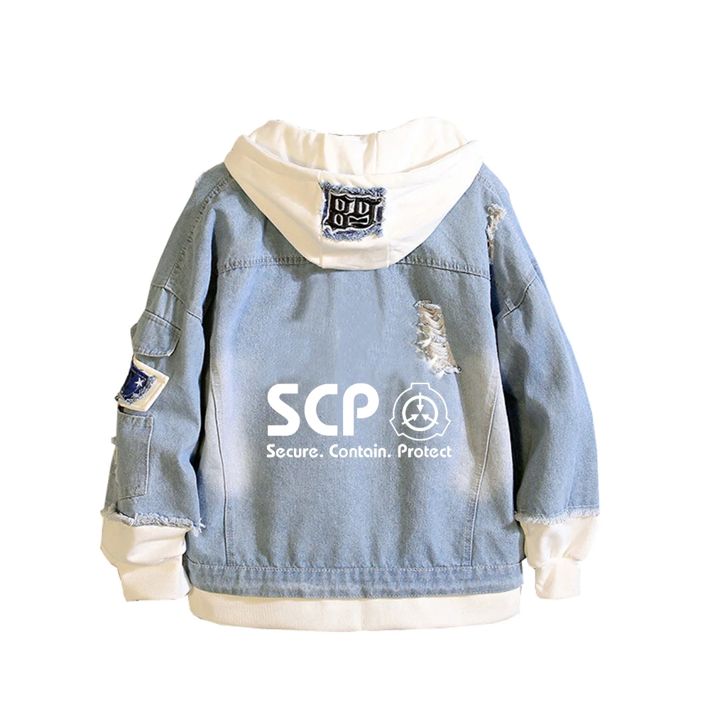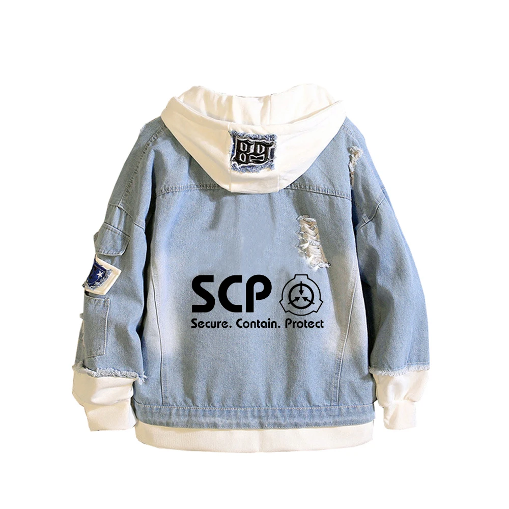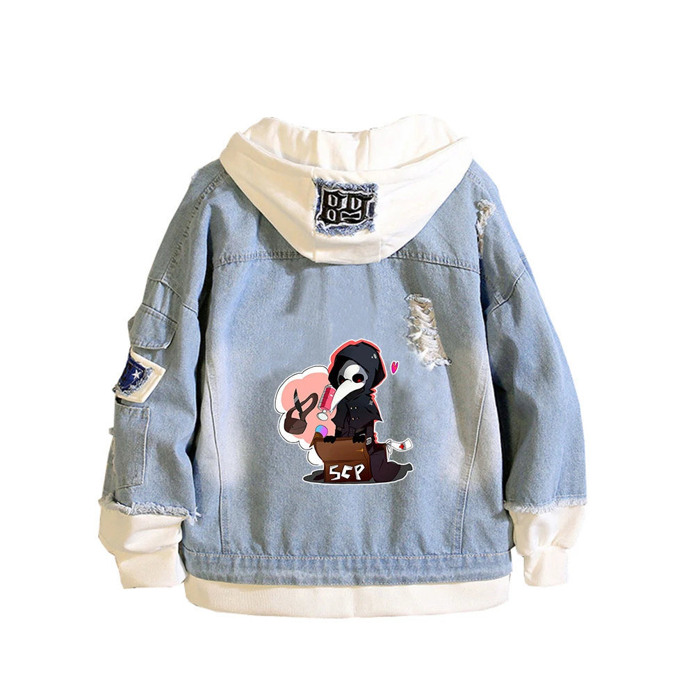 Женская джинсовая куртка с принтом SCP Foundation, толстовки в стиле пэчворк с героями мультфильмов, уличная одежда в стиле Харадзюку для мальчиков, джинсовая толстовка, парные пальто