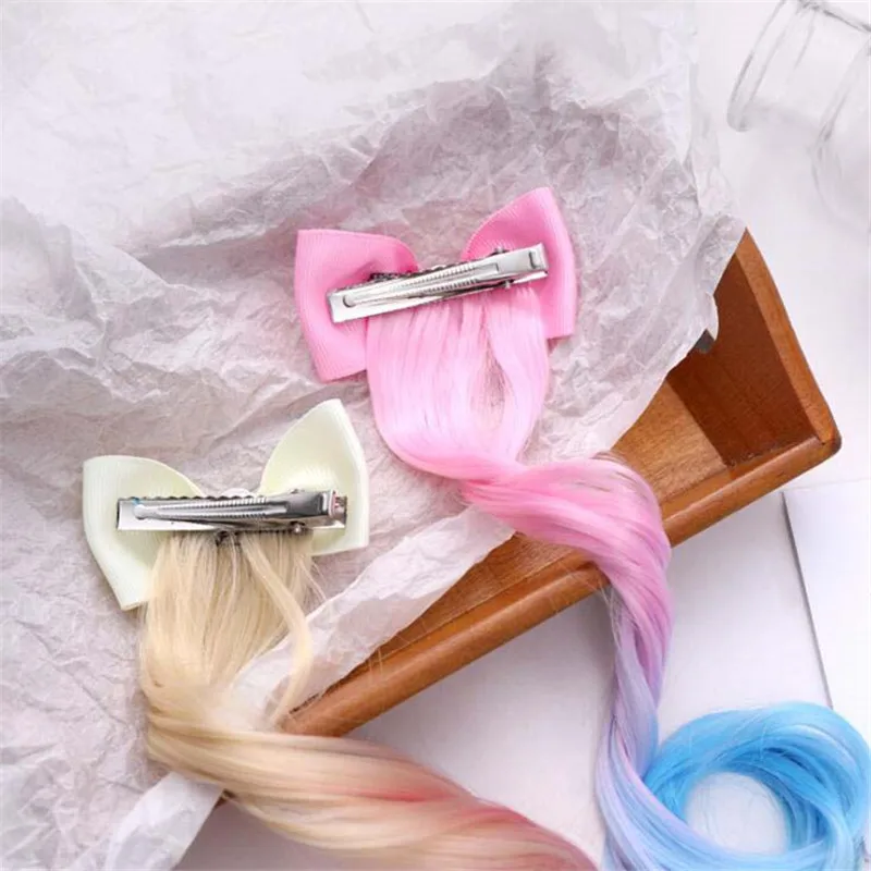 Заколки для волос для девочек, разноцветные градиентные заколки для волос с бантом, украшение ободок