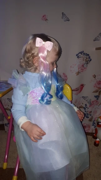 Качество товара - на разок-два. Волосы путаются сразу после открытия упаковки. Но нам в принципе так и нужно было: на один день - день рождения под цвет платья. Считаю, что цена вообще не оправдана. Ещё специально спрашивала продавца, сколько по времени ждать. Однако, не смотря на обещания, товар пришёл ровно через 1 день после дня рождения. Очень расстроены, разочарованы. Не стоит товар таких денег, ещё и с опозданием! Не советую.
