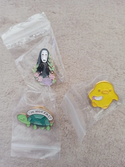 Значок в виде черепахи, яркой черной маски, призрака, цыпленка, утк...