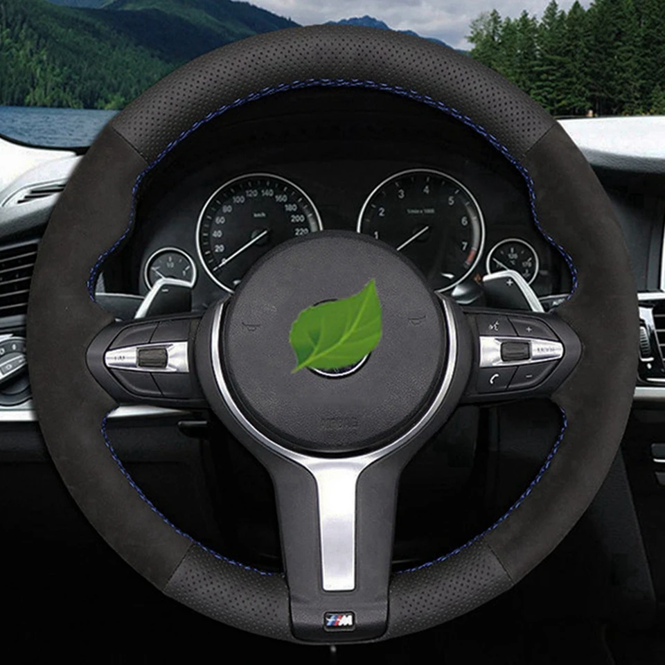 Сшитая вручную черная замша чехол рулевого колеса автомобиля для BM...