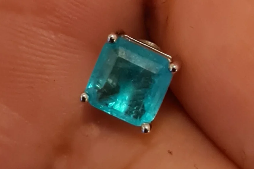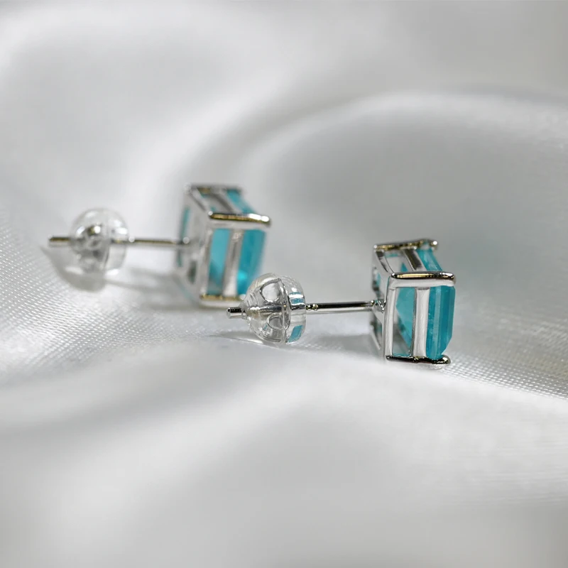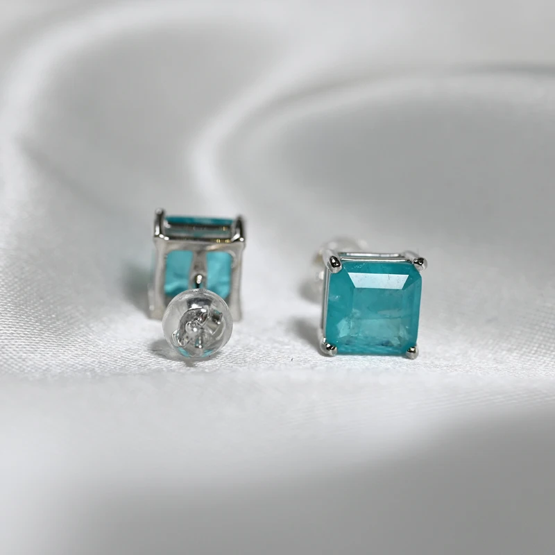 Плоские с обратной стороны, без граней. Сзади нанесён какой-то материал, для того, что бы спереди создавался эффект «включений», как у параиба. Упаковали хорошо, бархатный мешочек, салфетка для протирания ювелирки. Соотношение цена - качество - приемлемо.