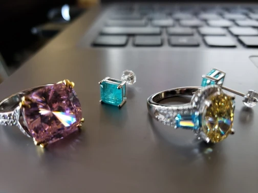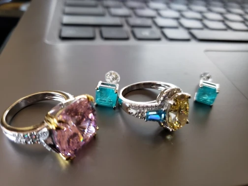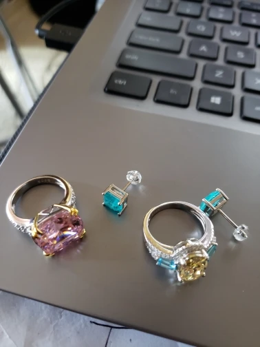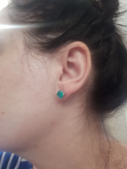 Очень красивые, качественно сделанные гвоздики. Не маленькие, заметные, потрясающие! Брала к кольцу, купленному в ювелирном магазине, поэтому цвет выбирала на глаз, как видно, он не совпадает, но цвет сережек мне нравится даже больше, поэтому в любом случае я очень довольна)