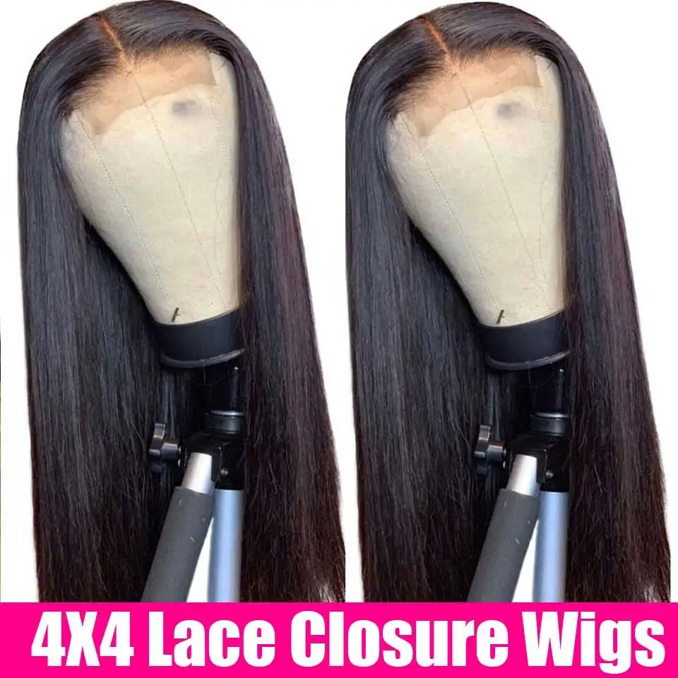 13x4 прямые Синтетические волосы на кружеве Парик Hd прозрачный Синтетические волосы на кружеве человеческие волосы парики предварительно вырезанные 4X4 Кружева Закрытие парик, несекущиеся бразильские вьющиеся волосы Remy парики