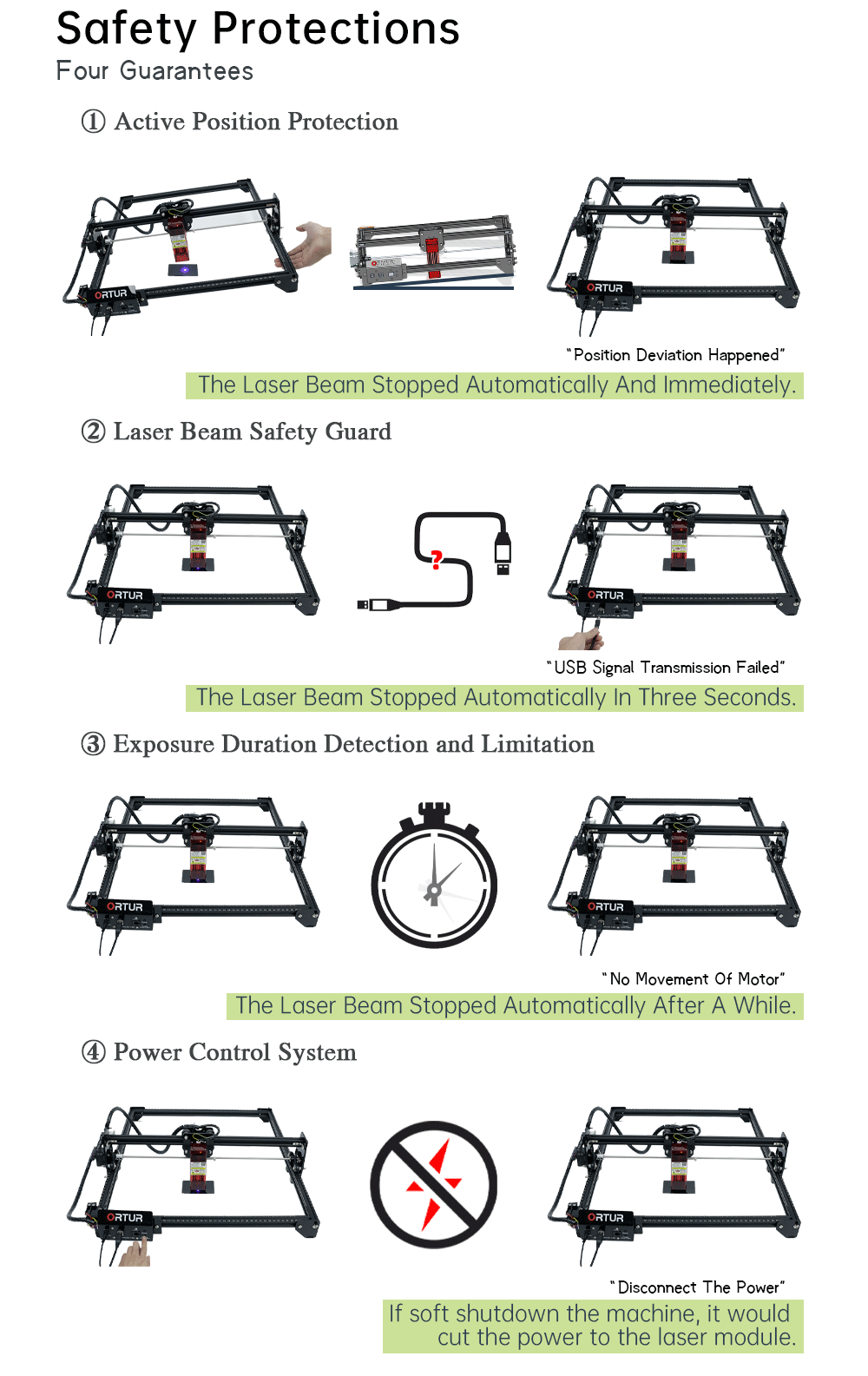 Обратите внимание:A. Бесплатная доставка не означает бесплатную пошлину и не включает плату за удаленную зону. Как мы все знаем, импортные товары высокой стоимости будут взиматься налог на импорт в каждой стране;B. Методы доставки продавца-это доставка курьерской компанией, такой как DHL/FedEx/ UPS/ TNT;C. У нас есть бесплатный метод DDP в страны ЕС, но это медленный метод, и требуется 30-45 дней для доставки.При возникновении любых вопросов обращайтесь к нам!Краткое описание:Основные характеристики:● Специализированная материнская плата с 32 битами MCUОн может обрабатывать 32 инструкции, поддерживать скорость передачи данных до 921600, более мощный!● Самая продвинутая 32 битная Лазерная гравер прошивкаOrtur laser master прошивка, умнее, быстрее, более высокая точность и проще в использовании.● Диапазон мощности лазера может быть S0 - S1000, по сравнению с 8 битами настольных лазерных гравировальных станков, которые имеют только S0 - S255, Ortur лазерный мастер может контролировать лазерный луч более точно, может даже использовать лазерное устройство высокой мощности, чтобы «нарисовать» изображение на бумаге, О том, что 8 бит высокой мощности лазерные гравировальные инструменты не смог нажать на кнопку.● Скорость гравировки может достигать 5000 мм/мин.● Защита активного положенияНа материнской плате есть g-сенсор, если машина обнаруживает неавторизованное движение, лазерный луч остановится.● Защита лазерного лучаЕсли ваша компьютерная система остановлена или USB кабель отключен, привело к тому, что лазерный гравер останавливает движение, лазерный луч остановится, чтобы предотвратить пожар.● Обнаружение и ограничение длительности экспозицииЕсли лазерный гравер находится под контролем, но пользователи забывают работать и поддерживать работу лазерного луча, дополнительная безопасность отключится, чехол остановит движение двигателя, чтобы предотвратить пожар.● LaserGRBL (бесплатное программное обеспечение) поддерживает Windows XP, 7, 8, 10. LaserGRBL является самым популярным программным обеспечением для резьбы в мире, может импортировать различные форматы изображений, вы можете редактировать в PhotoShop, Inkscape, CAD и т. Д., а затем подключаться к граверу с помощью лазерного LaserGRBL для гравировки и резки.● LightBurn (период 30 дней, lightburnsoftware.com) поддерживает Windows, Mac OS и Linux. Это самое популярное Платное программное обеспечение для резьбы в мире, очень простое в использовании.● Этот лазерный гравер поддерживает режим PWM.● Предварительно собранные детали, просто нужно 10 - 20 минут для установки машины.● 390x410 мм большая площадь гравировки.● Рама из алюминиевого профиля + структурный кабель, прочная структура, плавная работа, привлекательный внешний вид● Синхронизация механической структуры вала, избегайте синхронизации на двух y-рельсах во время полноскоростной гравировки.Спецификация:● Материнская плата: материнская плата 32 бит● Прошивка: Ortur Laser Master прошивка● ОС верхнего компьютера: Windows (работает с LaserGRBL ), MAC OS и Linux (работает с LightBurn)● Длина волны: 445 ± 5 нм● Формат ввода: NC, BMP, JPG, PNG, DXF и т. Д.● Размер изображения: нет ограничений (точность пикселей может быть свободно отрегулирована, и по умолчанию 300 пикселей на дюйм, это около 0,81um точность пикселей)Примечание:● Пожалуйста, носите очки при работе с лазерным гравером. Надевайте защитные очки, чтобы избежать слепоты.● Пожалуйста, не при