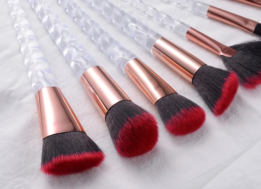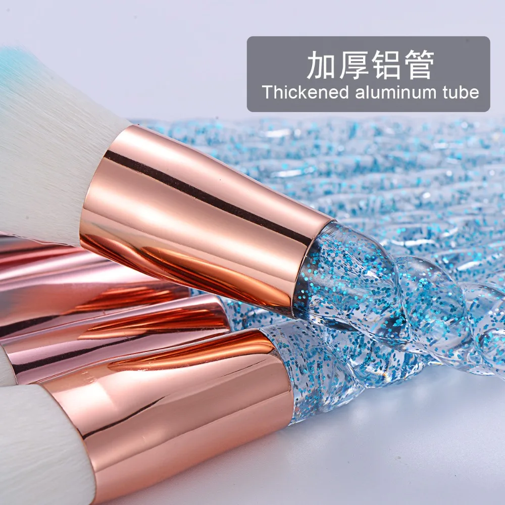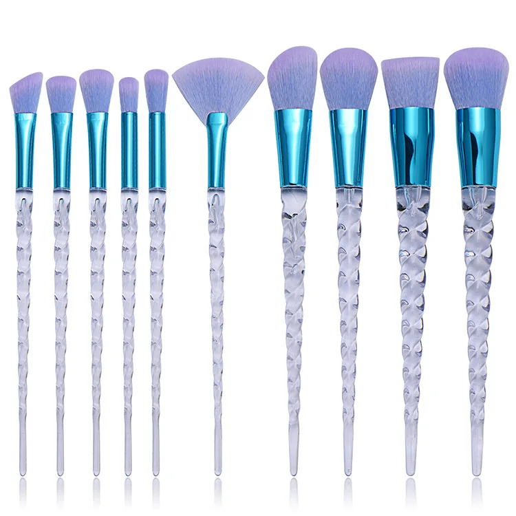 Наборы кистей для макияжа, 10 шт., наборы кистей для макияжа с витой ручкой в виде рога единорога для основы, пудры, косметики, румян, теней для век, глиттера, женские кисти для макияжа