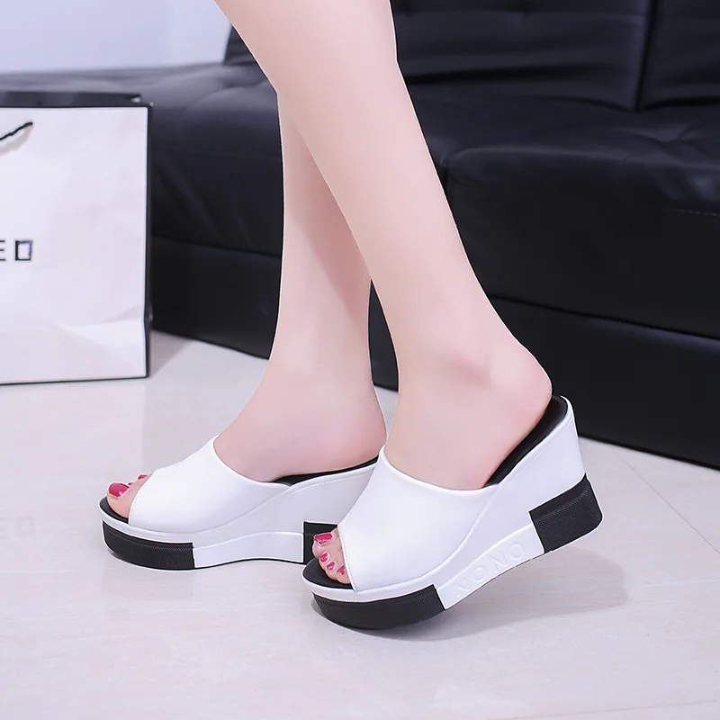 Шлепанцы женские на платформе, толстая подошва, обувь на танкетке, летние праздничные туфли-лодочки, сланцы, сандалии на высоком каблуке, мюли