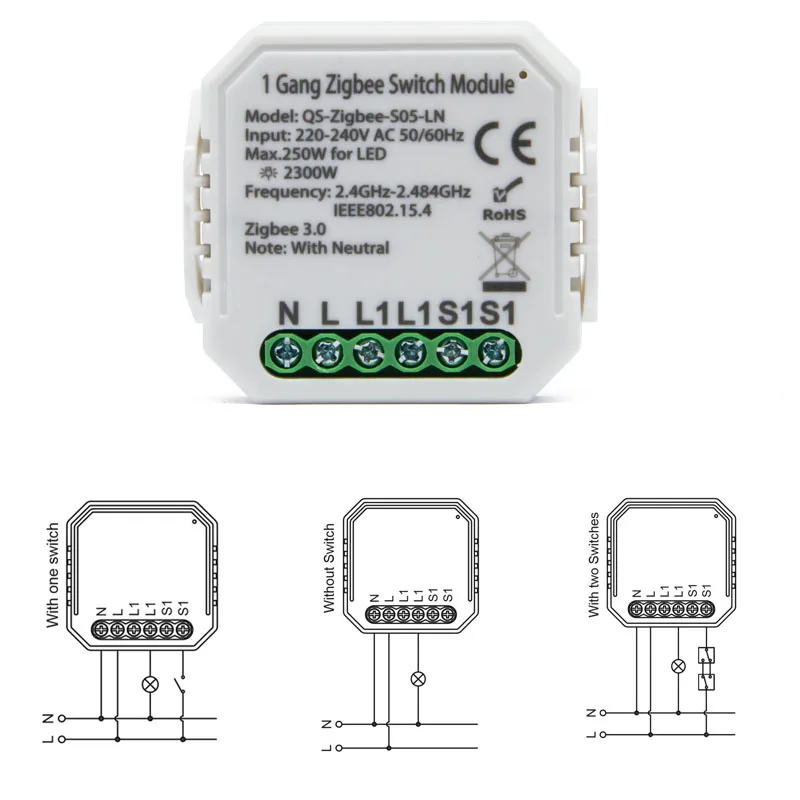 Позволяет сделать домотив на существующей установке без необходимости нейтрального кабеля за выключателем. Однако будьте осторожны, чтобы иметь довольно глубокую сломанную коробку. Отлично работает с zigbee2mqtt. Используется с светодиодными лампами, без вспышки.