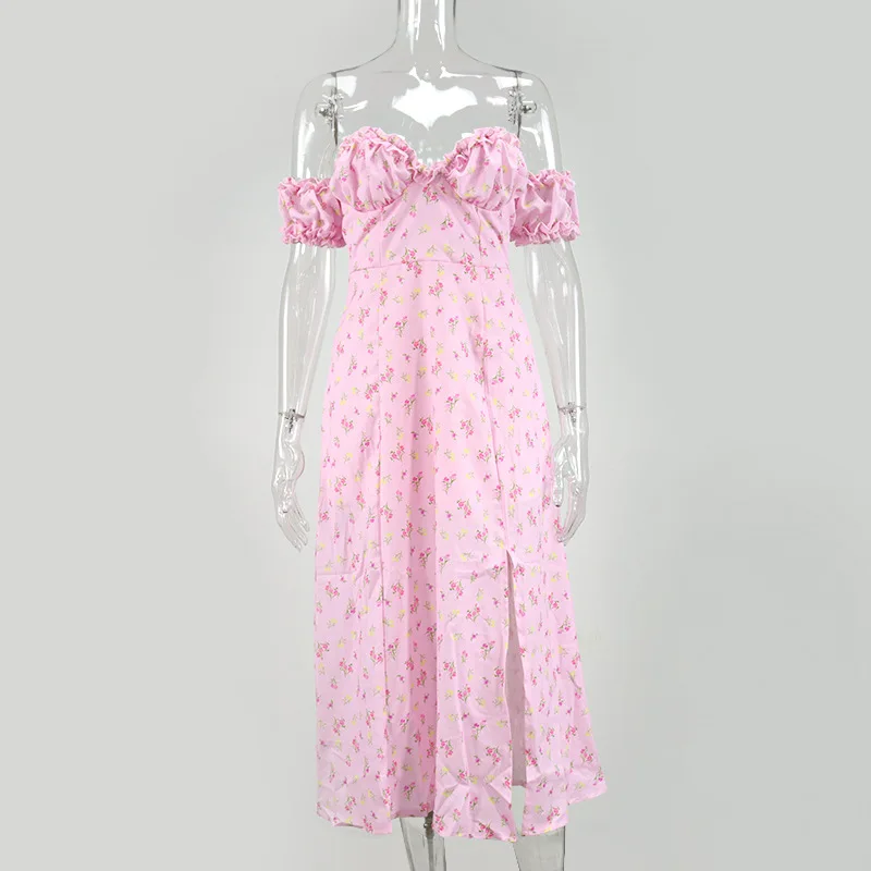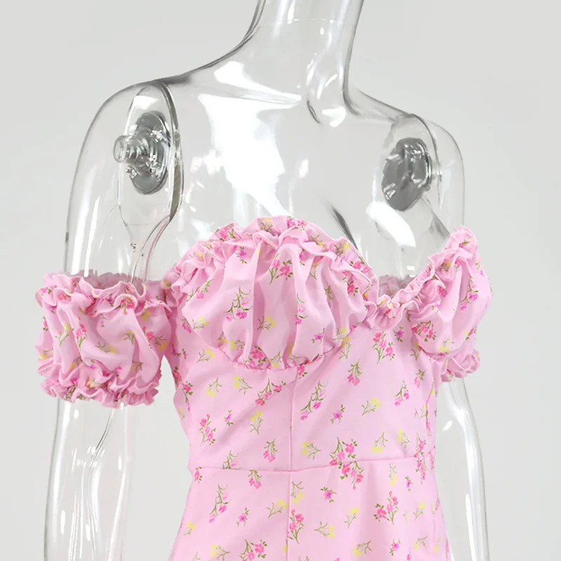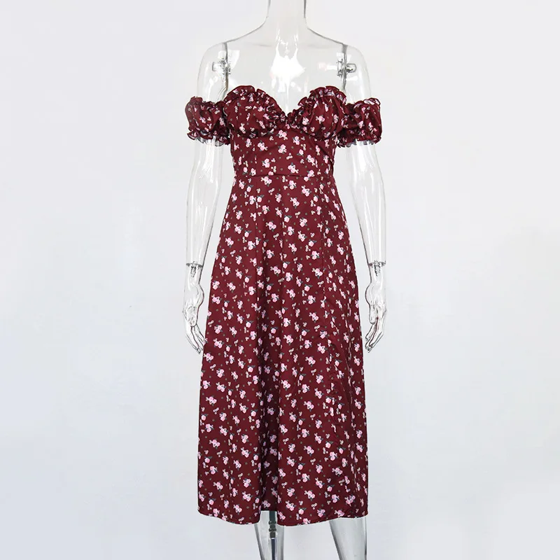 Летнее Длинное Платье макси с открытыми плечами и оборками, модное хлопковое длинное платье с цветочным принтом и открытой спиной, Пляжное Платье с разрезом