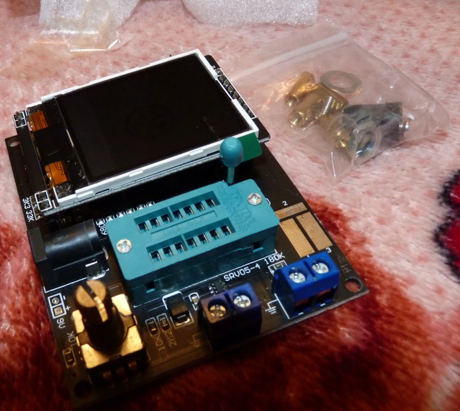 Прекрасно работает, я проверил: резисторы, конденсаторы, индукторы, потенциометры, Транзисторы, диоды, МОП-МОП, Тиристоры, Триаки и диаки PWM, Freq генератор и ИК-кодировщик прекрасно работают, и им так весело играть. Я подключил мой осциллограф, и я испытал много забавных вещей, чтобы узнать. Рекомендовано У него также есть Freqcuencymeter и Voltimeter, но я их еще не пробовал * Необходимо припаять зажим 9 В на две точки, если вы хотите взять его как портативный, в любом случае, вам придется использовать блок питания 9 в