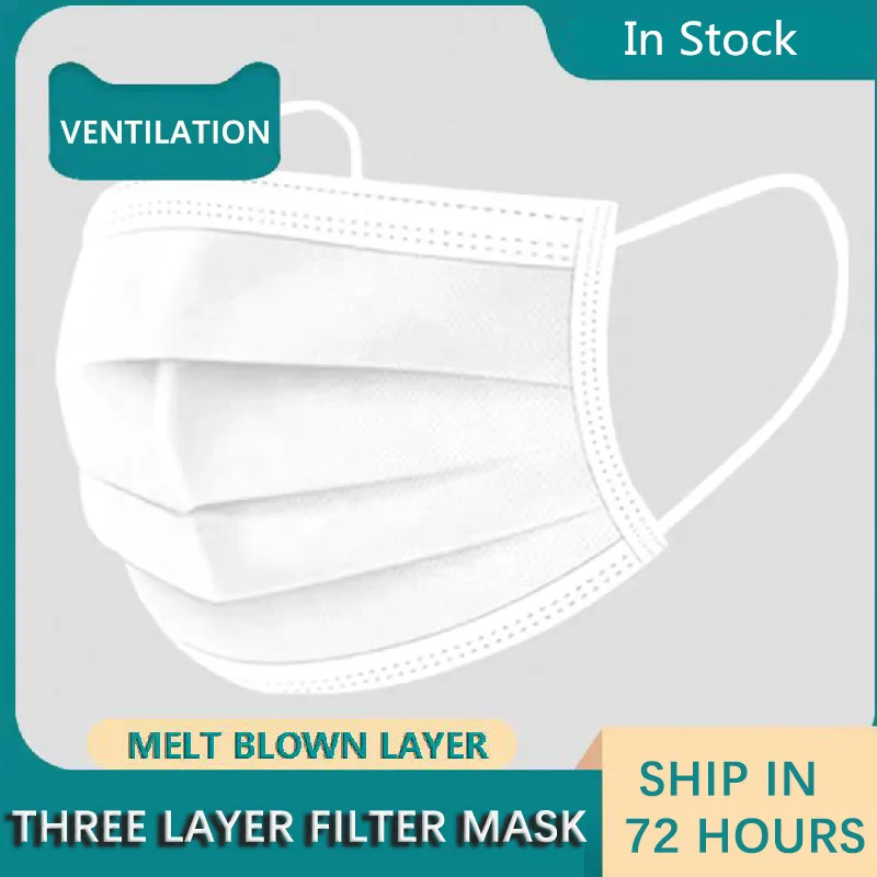 Быстрая доставка, защитная маска, черно-белая Защитная одноразовая маска от пыли, трехслойная Нетканая мелтблауна, фотопленка для мужчин и женщин