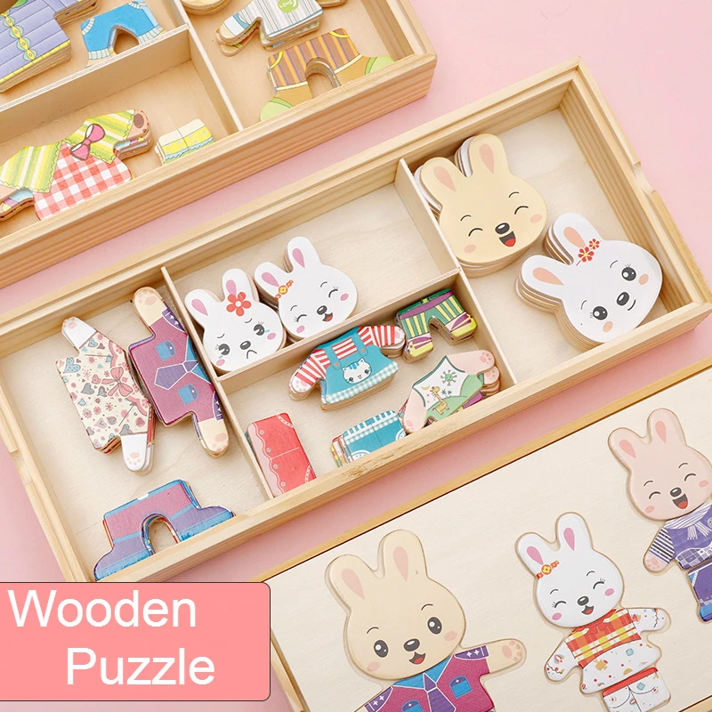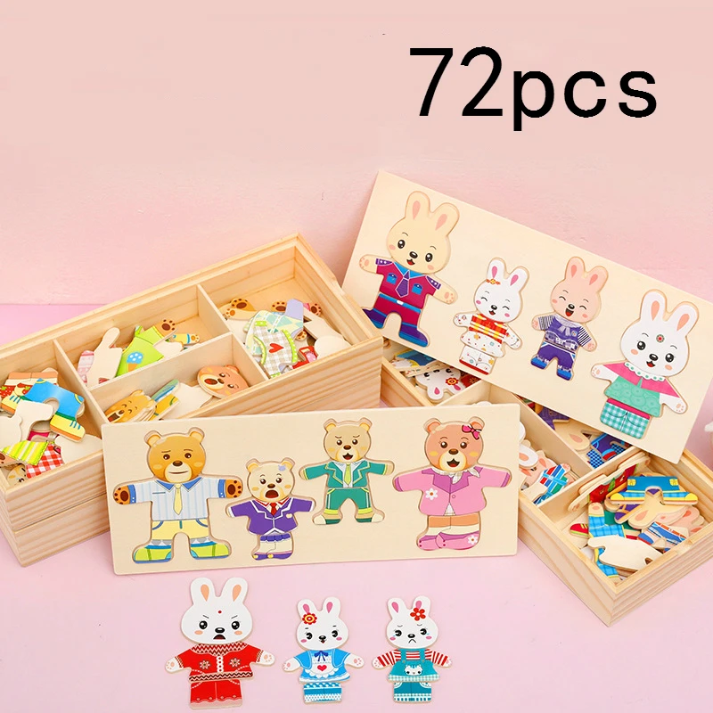 72 шт.монтессори детям развивающие игрушки деревянный пазл для детскаяживотные кролик головоломки, соответствие игры ,приодеть игрушки, развивающая игра, Интерактивные игрушки для малышей