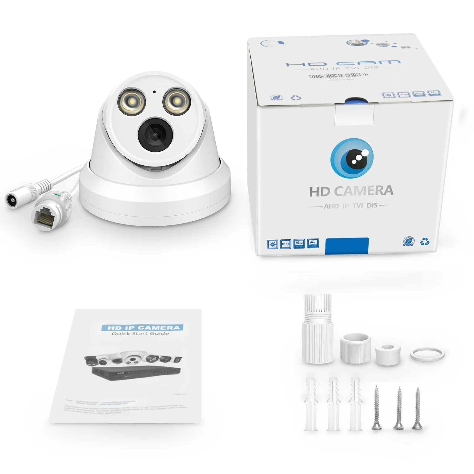 1. 2/5/8MP IPC * 1 2. Водонепроницаемый аксессуары * 1 3. Винт * 1 лот 4. Руководство пользователя * 1