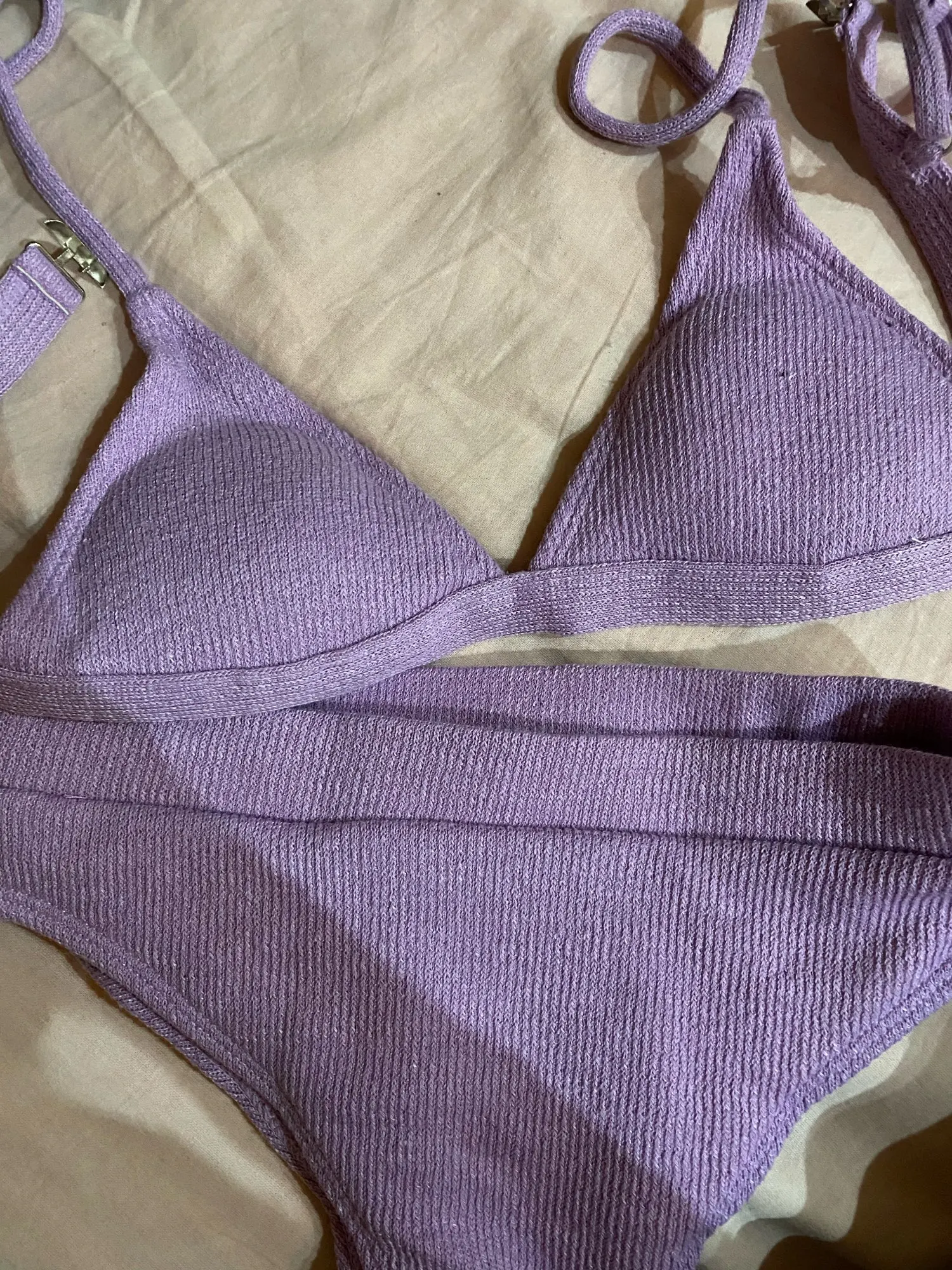 Купальник очень хорошего качества, очень хорошо выполнен, без торчащих ниток, но размер верха М к сожалению для меня слишком маленький, все выглядит слишком откровенно. Мои параметры ОГ 92 ОТ 72 ОБ 95. Низ очень хорошо подошел. Очень жаль, потому что купальник очень классный(