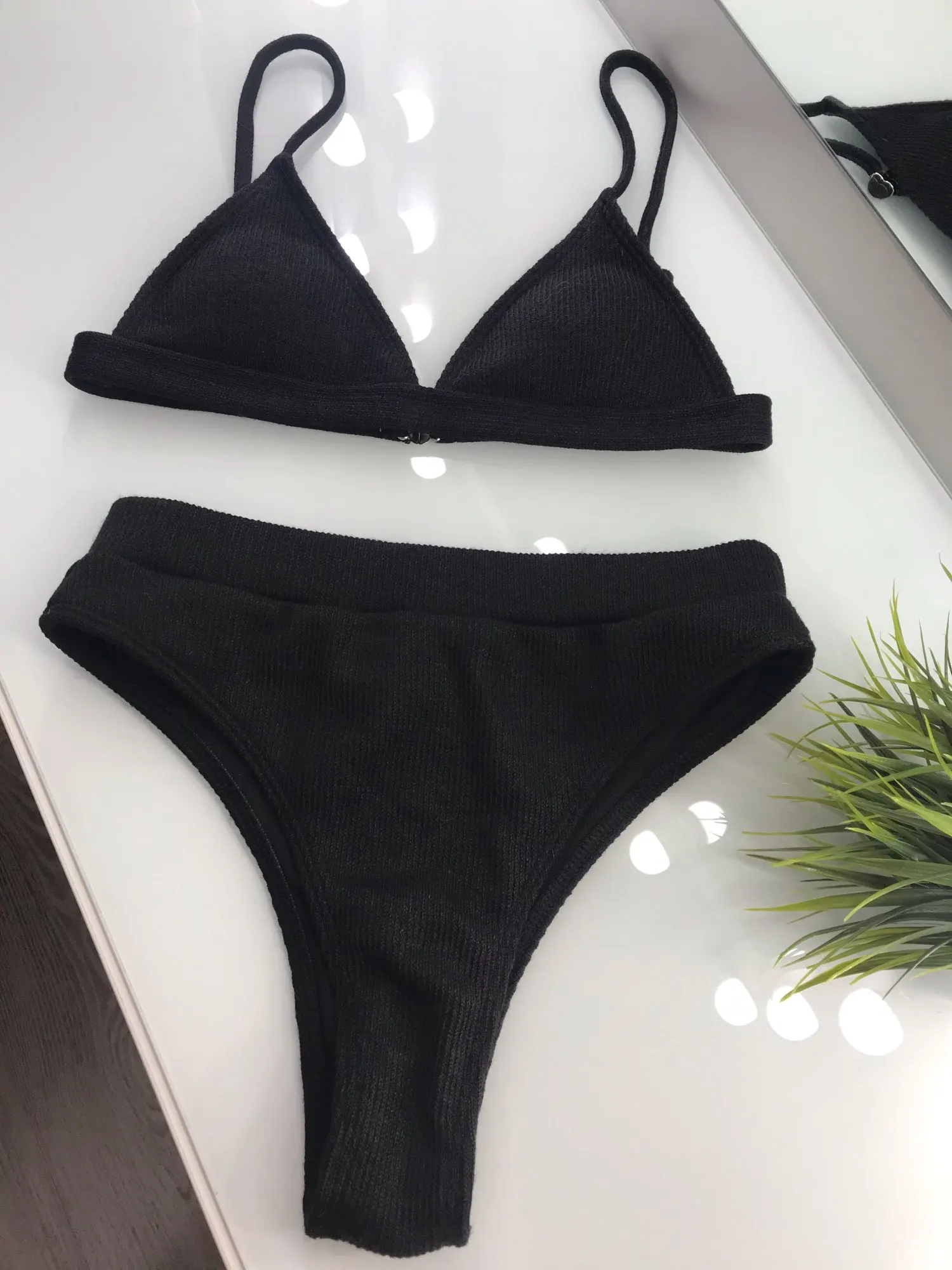 Купальник хороший, подошёл идеально, но есть несколько минусов для меня)У трусиков и спереди и сзади одинаковый вырез(не знаю как правильно сказать). Обычно ткани на попе больше, либо стринги, а тут на попе ткани столько же, сколько в области бикини, они на пол попы и постоянно приходится поправлять, лучше бы были уже как стринги сделаны, а то не удобно) Второе-это ткань. По ощущениям какой-то тёплый трикотаж, как-будто вязаный, склонна к катышкам) совсем не та ткань, которую обычно используют в купальниках)