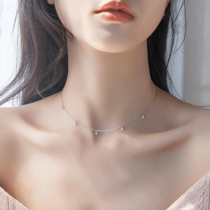 Цепочка-Подвеска женская из серебра ожерелье-чокер с треугольником пробы с фианитами