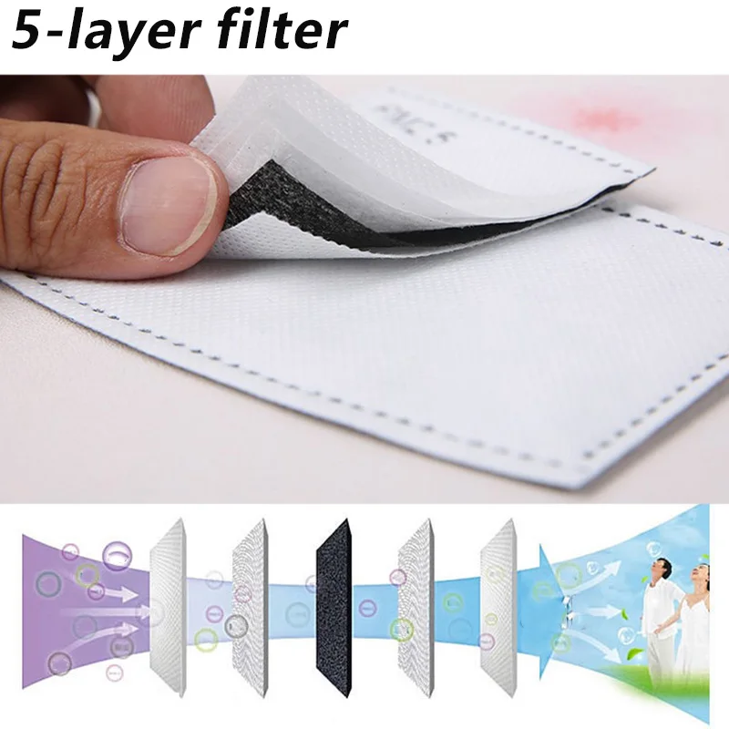Оптовая продажа, 5-слойные маски для лица с активированным углем PM 2,5, фильтр из бумаги, защитный фильтр, маски для рта, фильтр для детей и взрослых