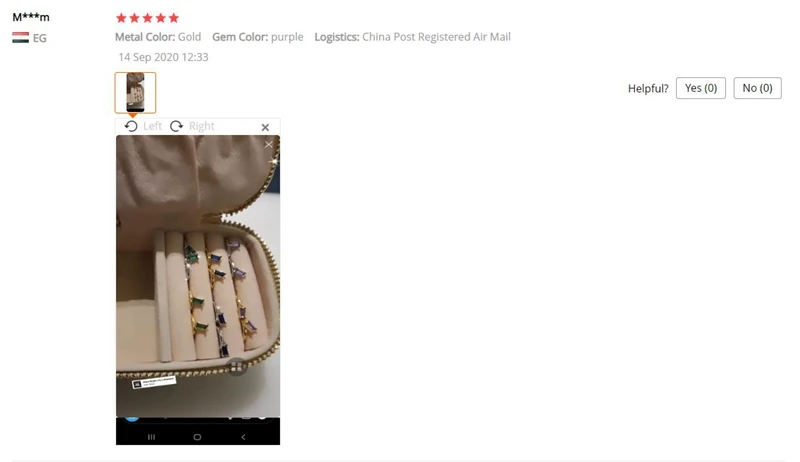 Страна: CY Metal Color: Gold Gem Color: White1 Доставка: Cainiao Super Economy Global 09.03.2021