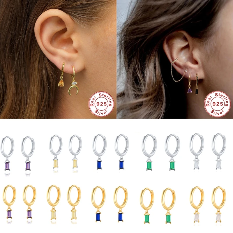 Женские серьги-кольца из серебра 925 пробы, с разноцветными цирконами, подарок на день Святого Валентина, ювелирные украшения