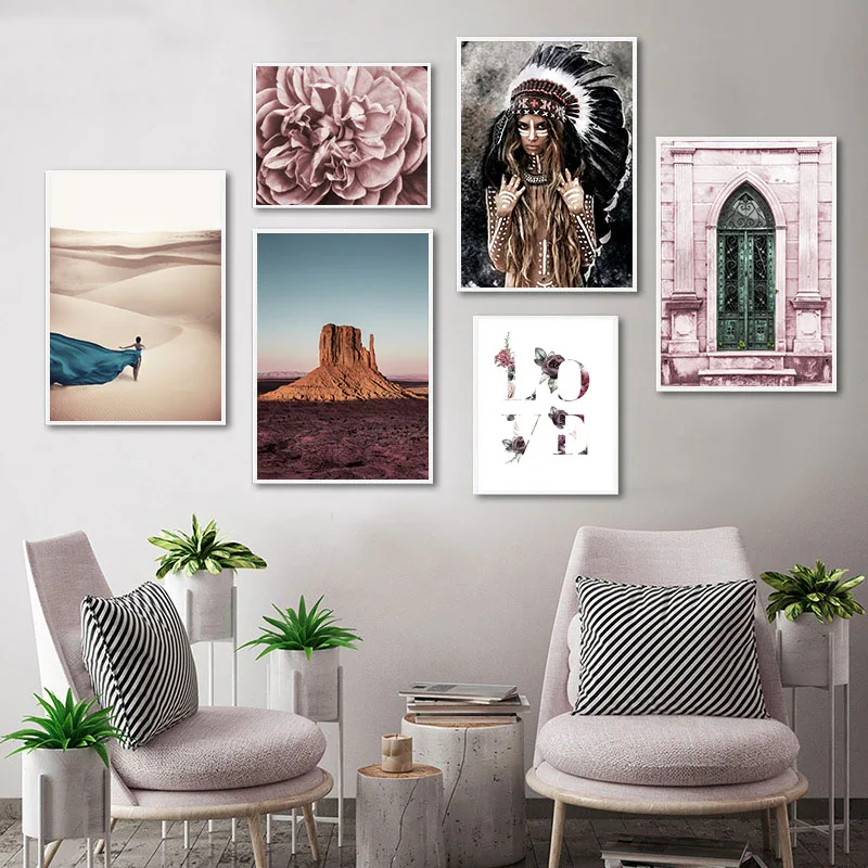 Скандинавия украшение дома картина старая дверь пустыня памятник долина холст постер скандинавский стиль пейзаж настенная живопись