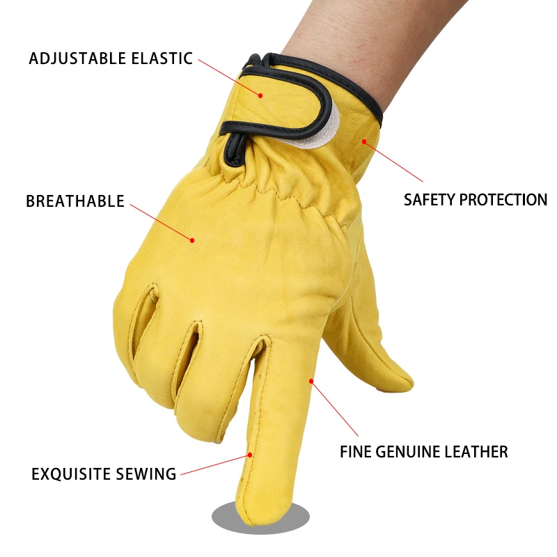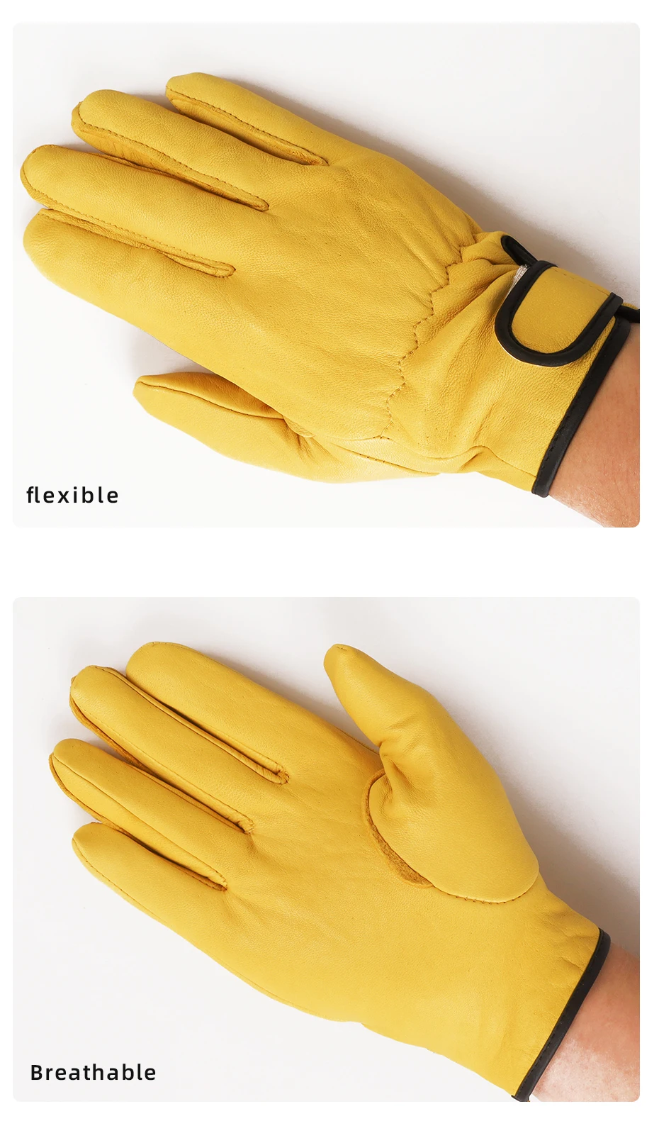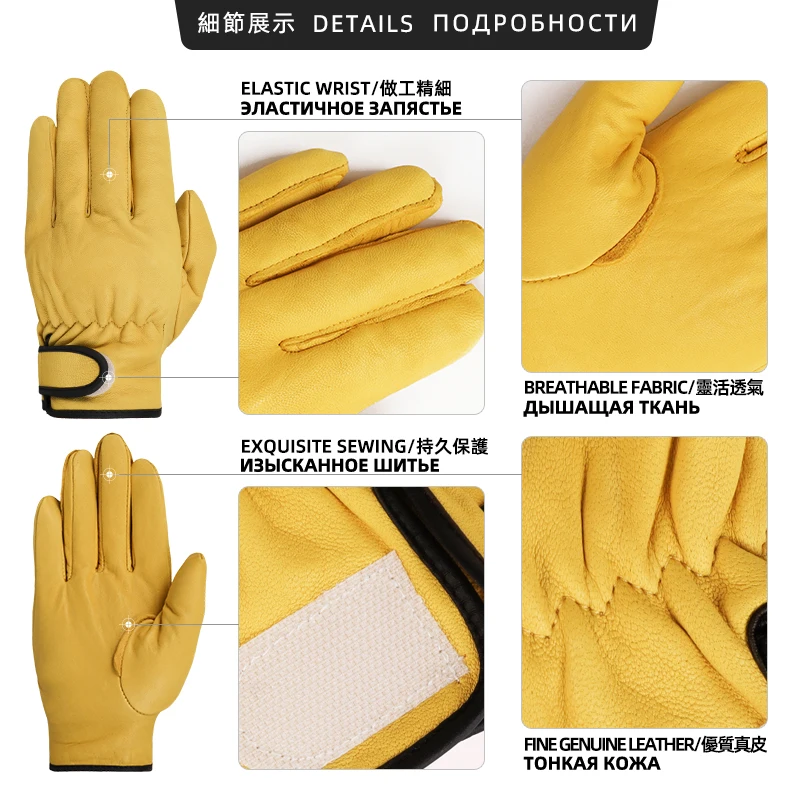 Изготовлено из высококачественной кожи средней толщины, мягкой и эластичной. Ладонь обладает повышенной износостойкостью, а эластичный ремешок на запястье позволяет удерживать пыль и мусор внутри перчаток, делая перчатку более близкой к руке. GON cut и KEYSTON thumb design-перчатки Gunn cut обладают отличной прочностью и гибкостью, потому что шов начинается от ладони. Уменьшите напряжение на шве, и наш Keystone большой палец дизайн, чтобы сделать перчатки. Сделайте ваши руки более гибкими и свободно двигайтесь. Из-за того, что материал является естественным дышащим, он хорошо впитывает пот.