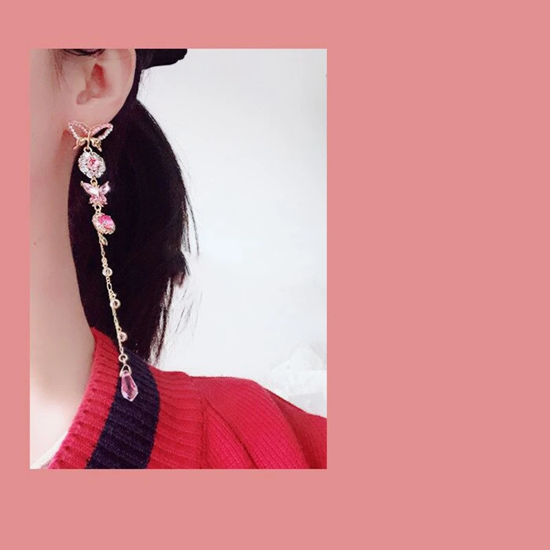 Женские серьги-подвески MENGJIQIAO, корейские длинные серьги-кисточки с бабочками и кристаллами, ювелирные украшения для праздника и вечеринки, 2020
