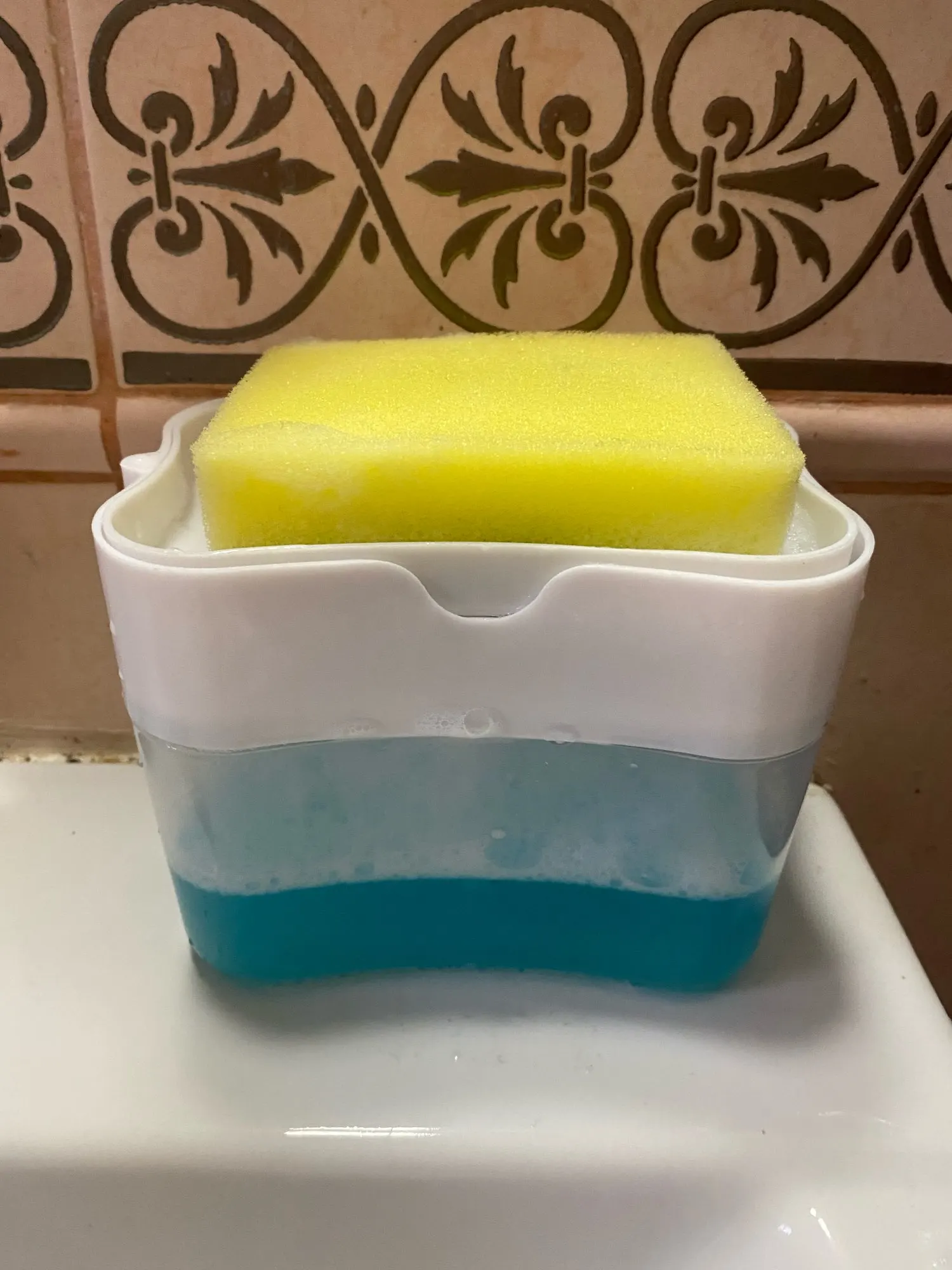 Мытье посуды намного быстрее с этим мыльным насосом и губкой Caddy.