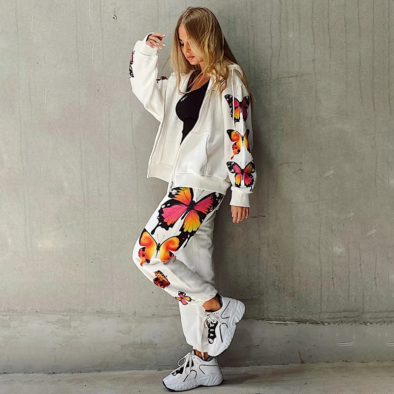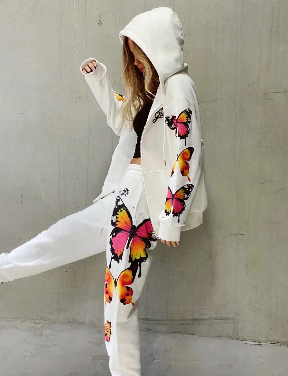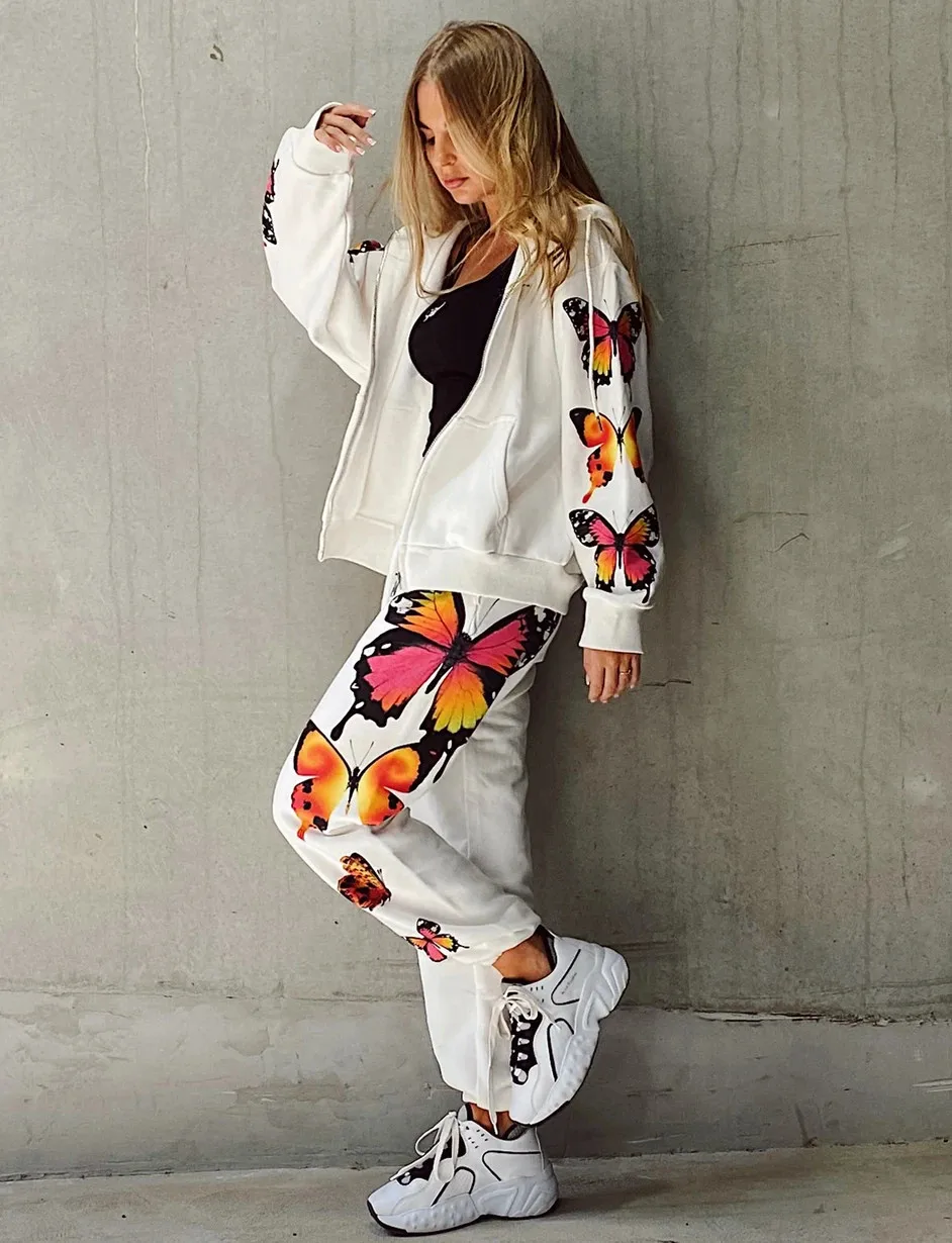 Женский спортивный костюм-двойка с принтом бабочки