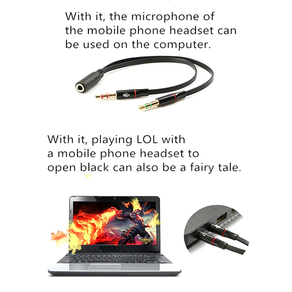 Особенности: Сплиттер гарнитуры отличается компактным и прочным дизайном, что обеспечивает идеальное решение для приложений, которые требуют портативности и занимают очень мало места. Позволяет подключать к любым 3,5 мм стерео наушникам с микрофоном. Позолоченное покрытие для лучшего качества звука. Два мужских порта: один для разъема для наушников на вашем ПК/ноутбуке/телефоне, другой для микрофона на вашем ПК/ноутбуке/телефоне. Цвет: черный Длина: 20 см Совместимость: для 3,5 мм стерео наушников с микрофоном Посылка включает в себя: 1x3,5 мм 1 Женский до 2 Мужской кабель