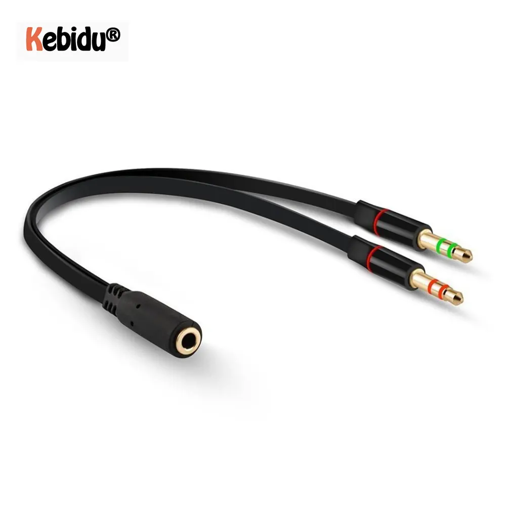 Стерео аудио разъем Kebidu 3,5 мм, переходник с 2 штекера на 1 гнездо, разделитель кабеля для микрофона и наушников, шнур для подключения к ноутбуку и ПК