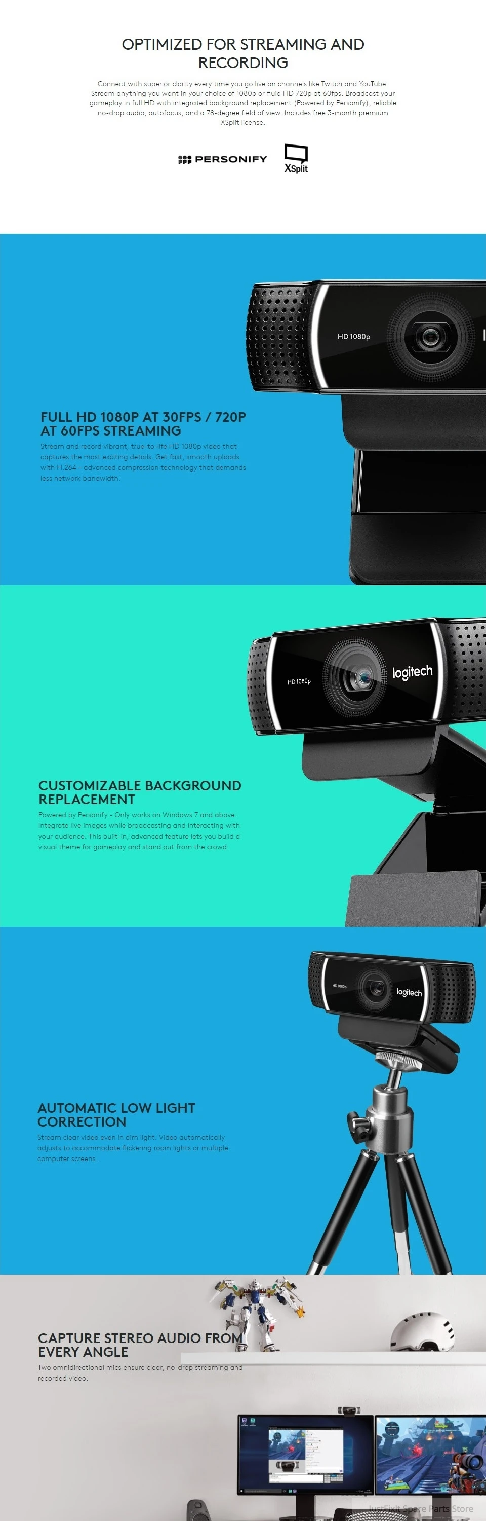 Веб-камера Logitech C922 HD Pro Stream с Micphone Full HD 1080P видео с автофокусом anchor веб-камера