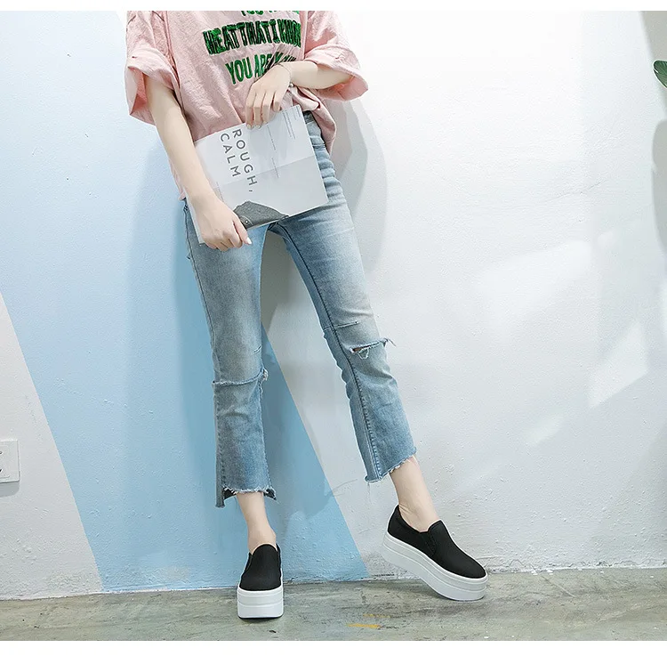 FujinЖенская обувь на платформе; Модная парусиновая однотонная повс...