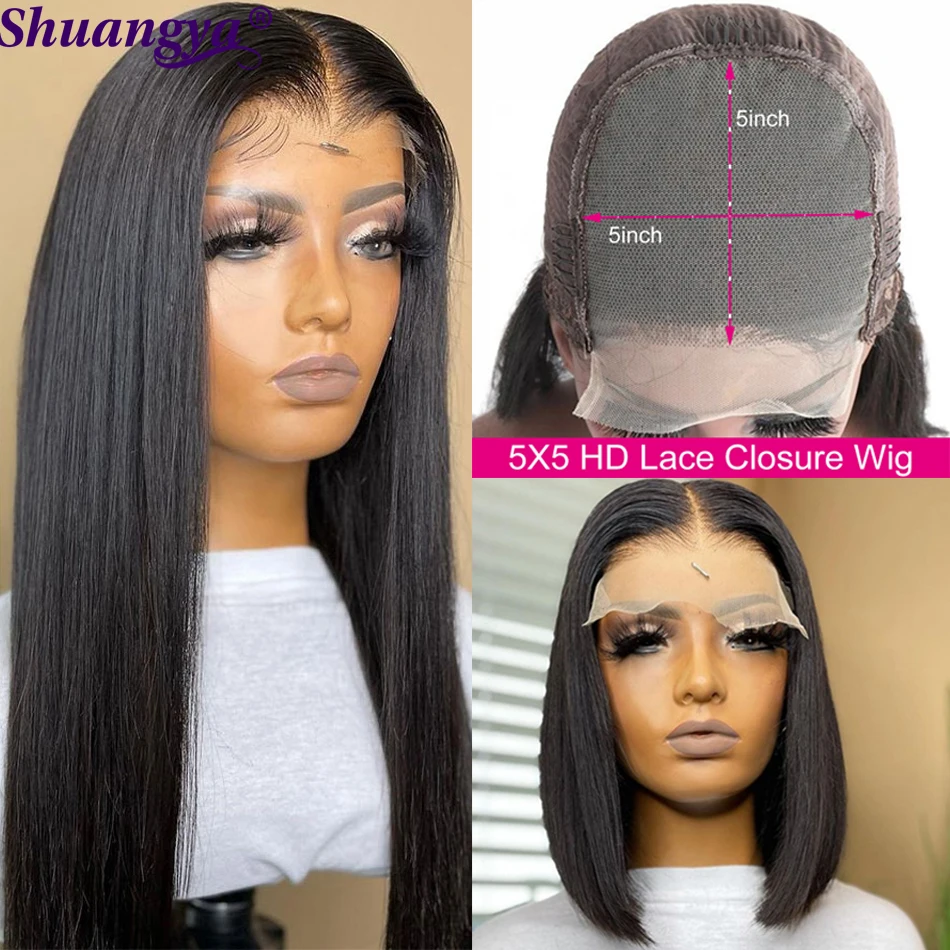 Bone прямые человеческие волосы на кружеве, парики Shuangya, прозрачный парик на шнуровке, малазийские волосы Remy, 5X5 HD, парик на шнуровке