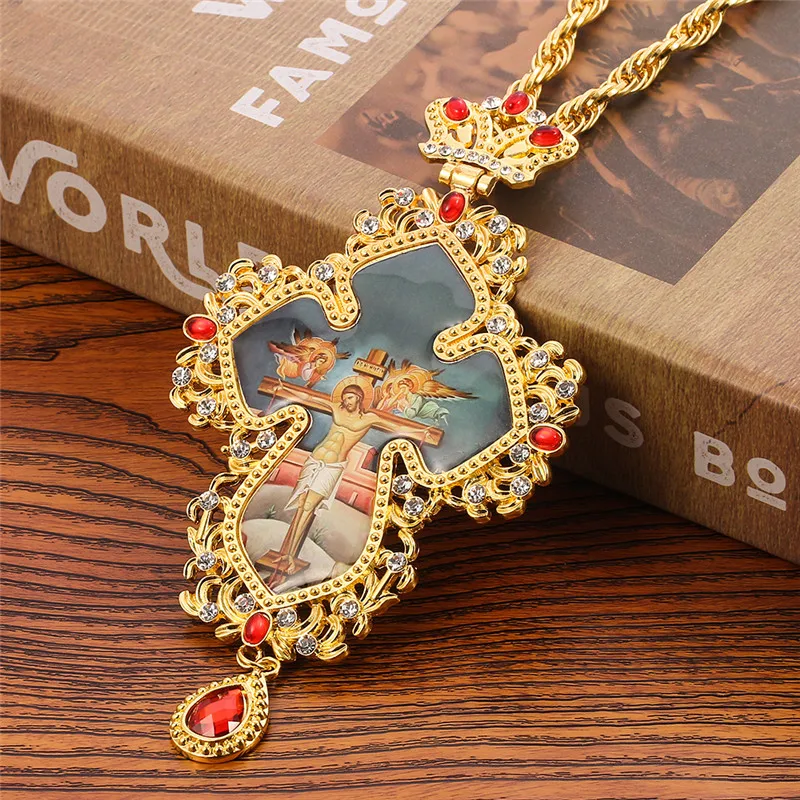 2021 Модное Новое Классическое мужское ожерелье с крестом, церковная православная католическая распятия, христианское ожерелье, религиозные поделки из сплава
