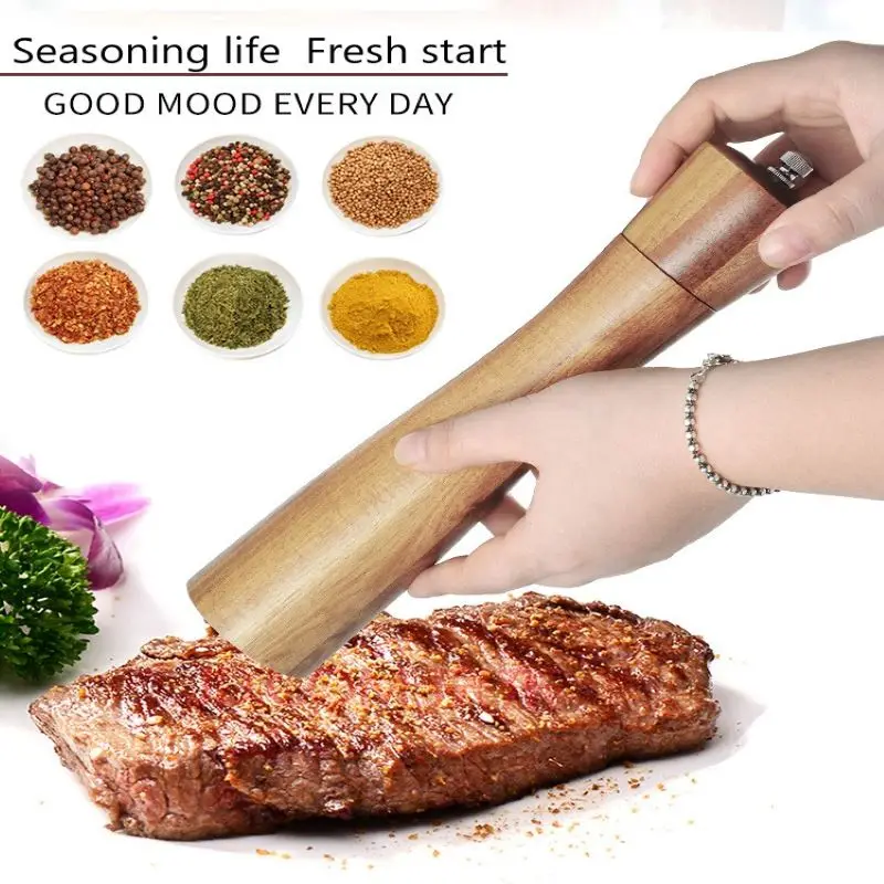 Мельница для перца из твердой древесины, ручная мельница 8 дюймов для соли и перца с керамическим помолом, зеркальная кухонная мельница для соли и перца