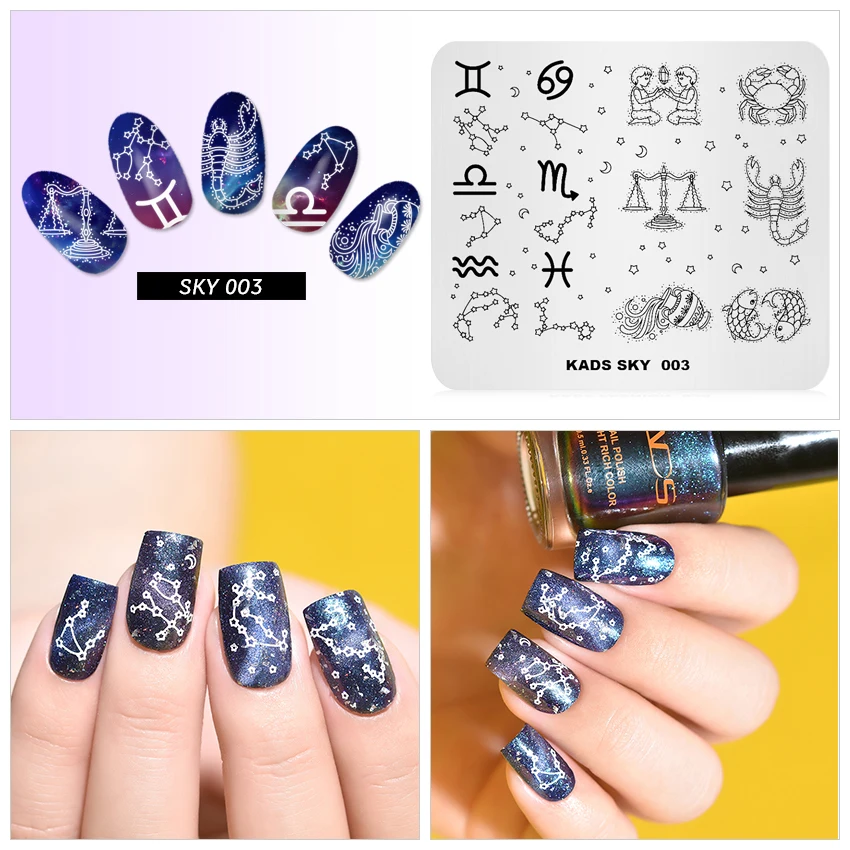 Шаблон для ногтей KADS с изображением неба с различными созвездиями...