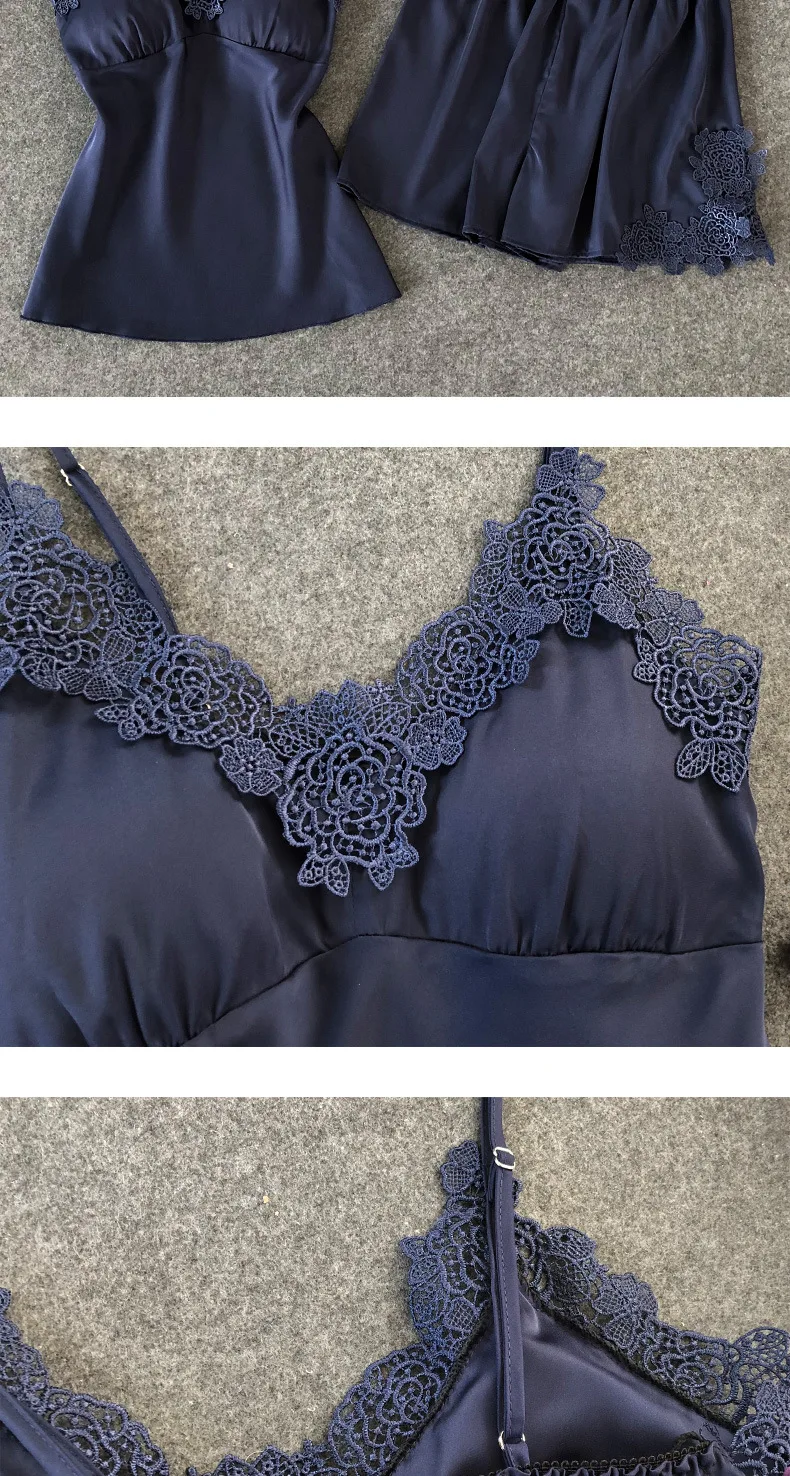 Халат-кимоно Женский Свадебный с кружевной отделкой и V-образным вырезом