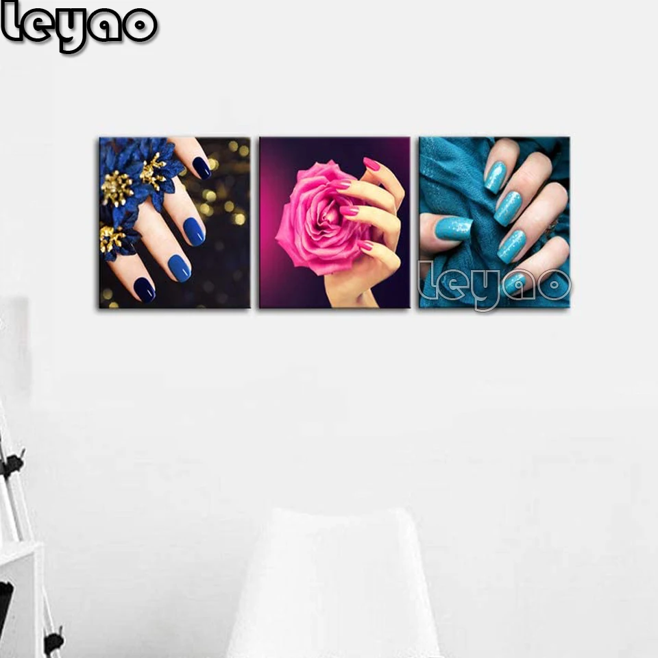 3 шт. Современная алмазная живопись, настенное искусство, модная женская Триптих для салона красоты, живопись для ногтей, ручной спа-макияж, украшение для спальни