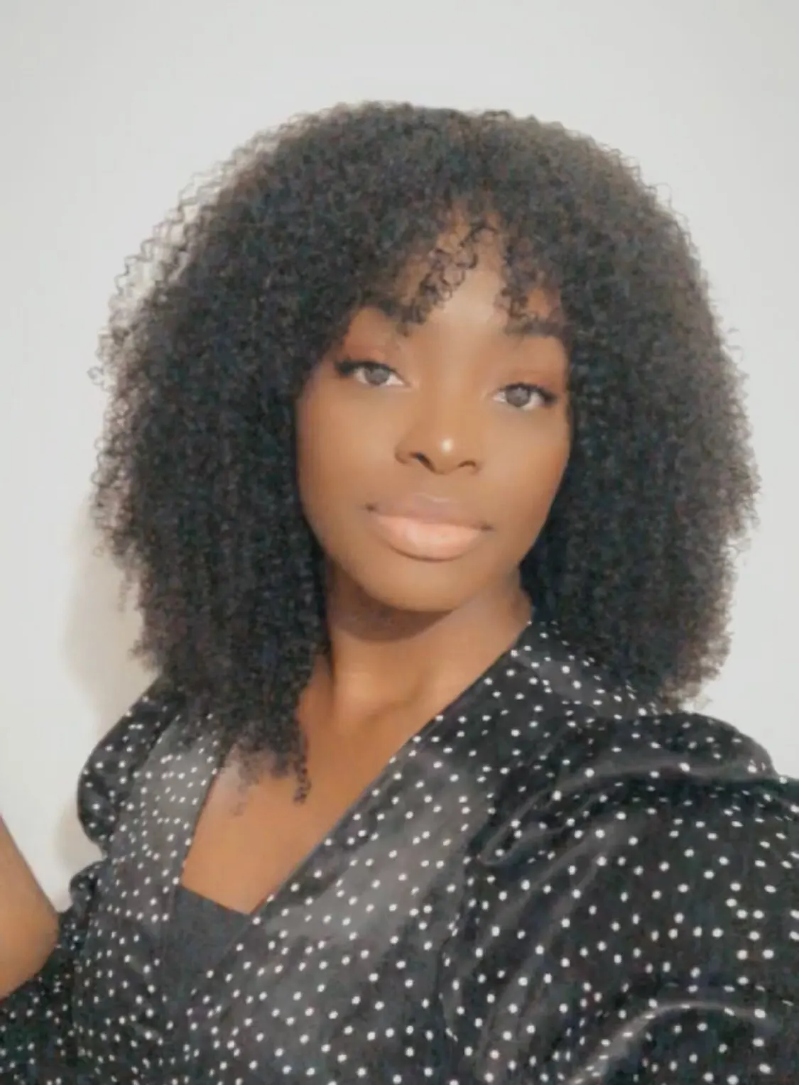 Челка не выглядит как на картинке. Волосы действительно вьющиеся и густые.