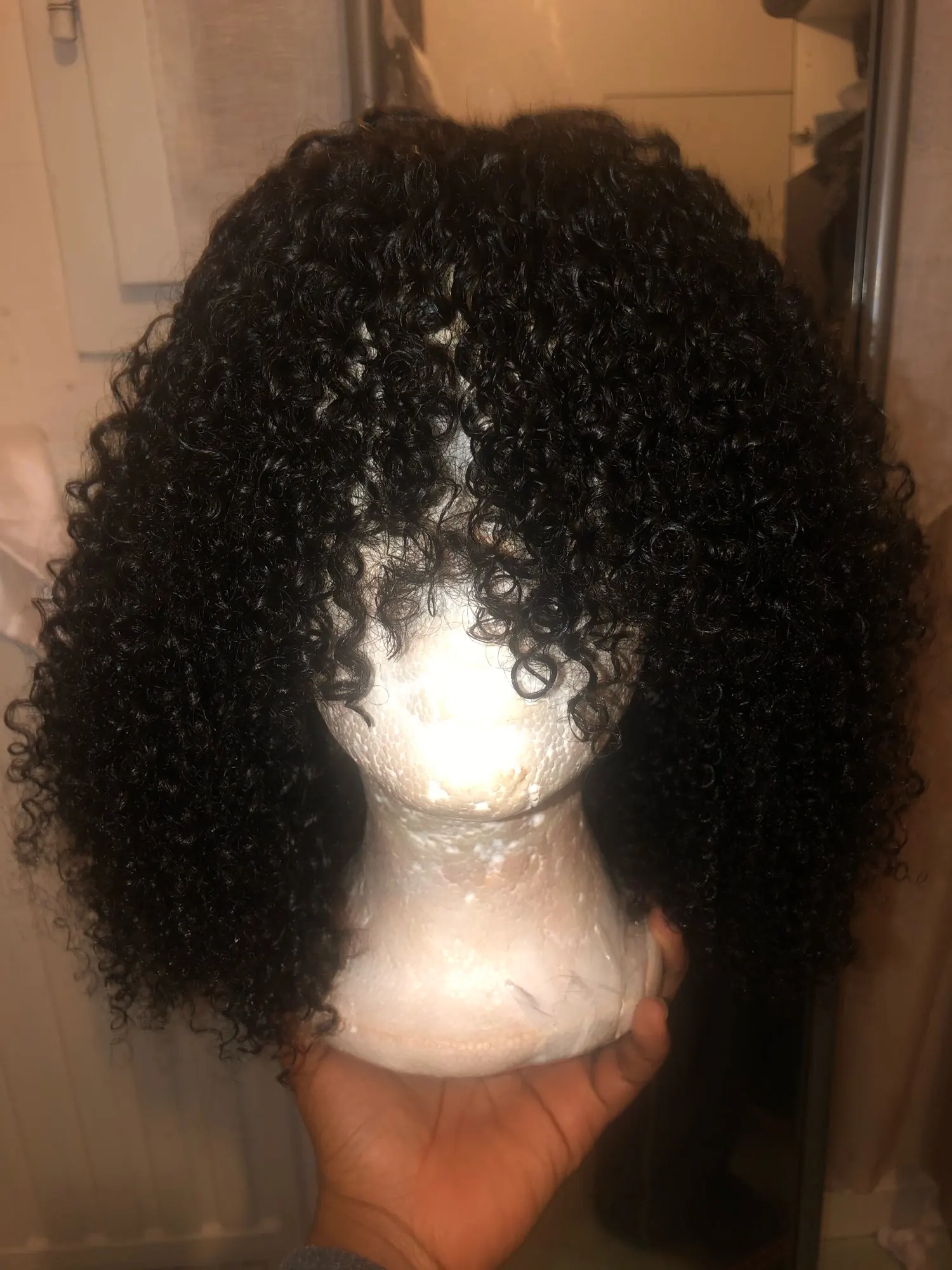 This is no fake review!!! I received my wig and it is absolutely beautiful and the curls are to die for!!!!! Literally, the shipping was fast, delivery was prompt, and the seller responds very fast, superb customer service and sweet all around. They make sure you get your order, although you don't have to sign for your package. Would be a great idea though. Like I said... it took a week for me to receive my wig and still fast shipping and delivery!!! The hair is definitely described as in the stock pics, all you have to do is wash and condition and BOOM! Fyi* I used Shea Moisture products and it works so well. Here are a few pics of what I done to my wig. It's 12in but the next time I order, Im'a get 18 or 20in 180 density is perfect for me!