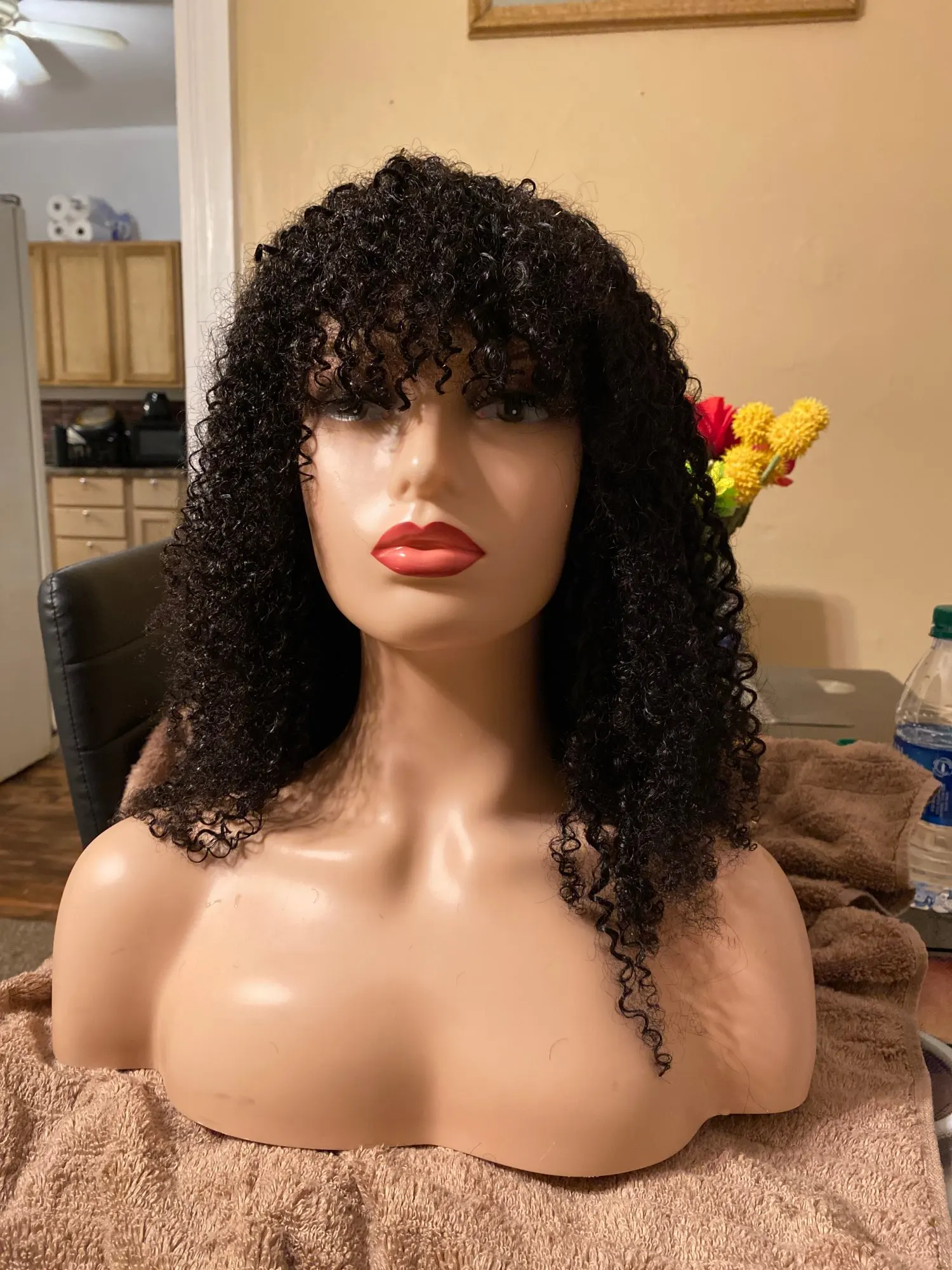 Очень красивый парик. Парик Полный и жидкие кудри очень красивые. Помимо того, что черный цвет очень темный, но может быть красочным, и что на верхней части шляпы он немного «картон», но в любом случае это не мешает, он остается красивым диапазоном. В остальном нареканий нет, кроме того, что продавец лишний, очень внимательный и доступный. Быстрая и чистая Доставка. Я рекомендую это вам. Мой следующий парик переднего кружева я закажу у него. Спасибо продавцу.