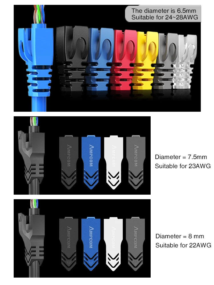 Колпачки для сетевого кабеля Ethernet AMPCOM, 50100 шт., для CAT8, CAT7, CAT6A, CAT6, CAT5E, CAT5