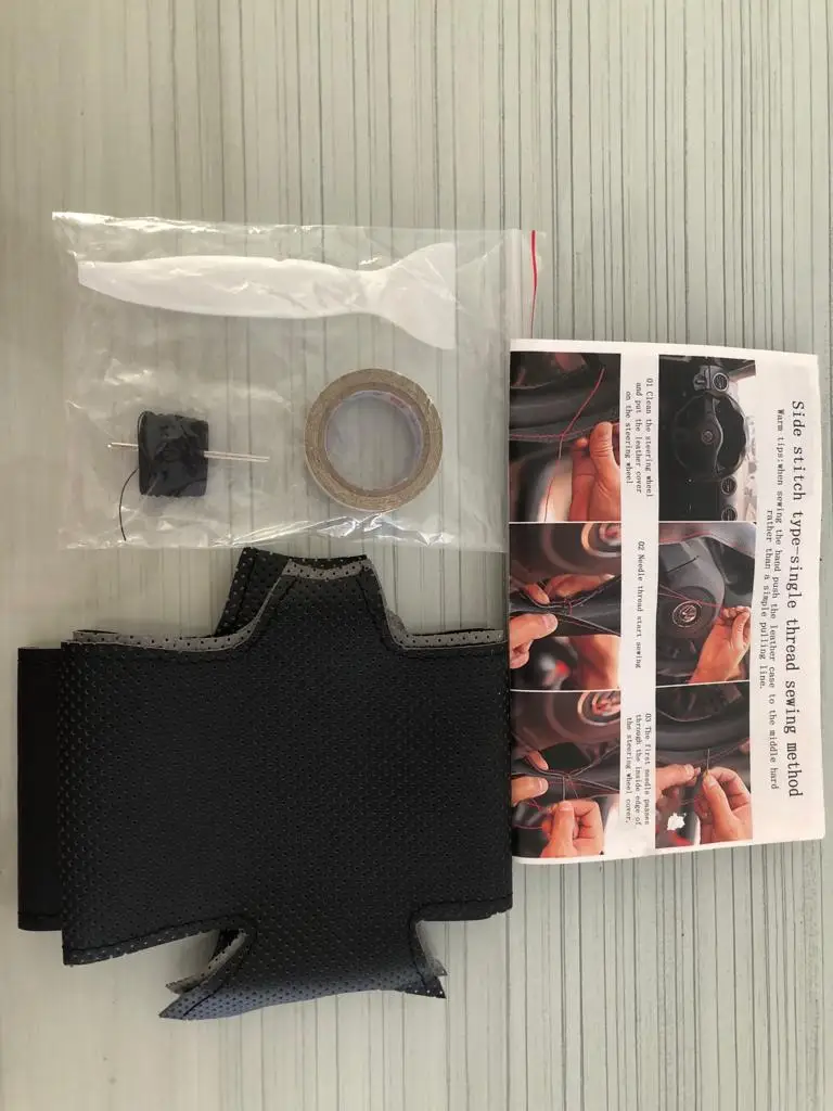 DIY сшитый вручную черный мягкий чехол рулевого колеса автомобиля и...