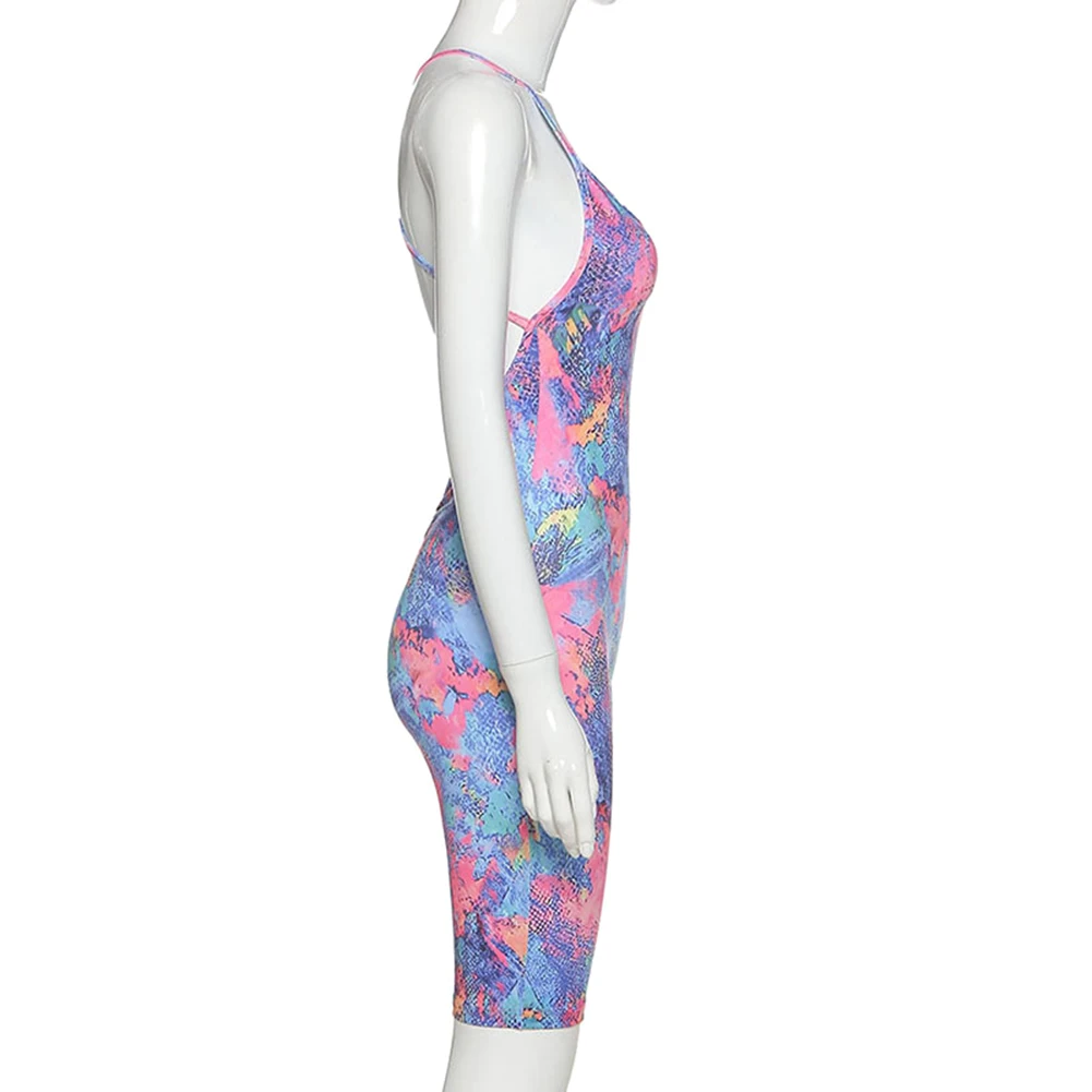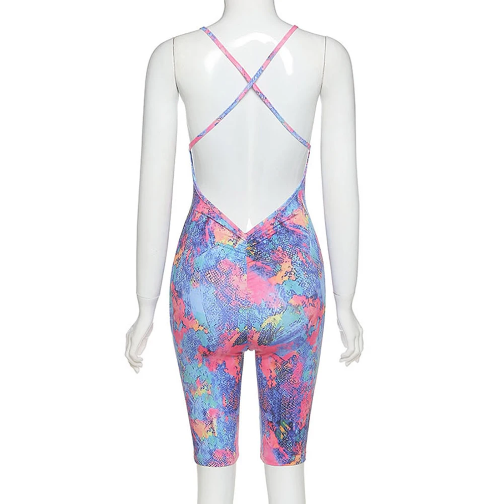 Женский спортивный костюм с принтом, летний модный сексуальный облегающий Боди без рукавов с открытой спиной, спортивный костюм для занятий спортом