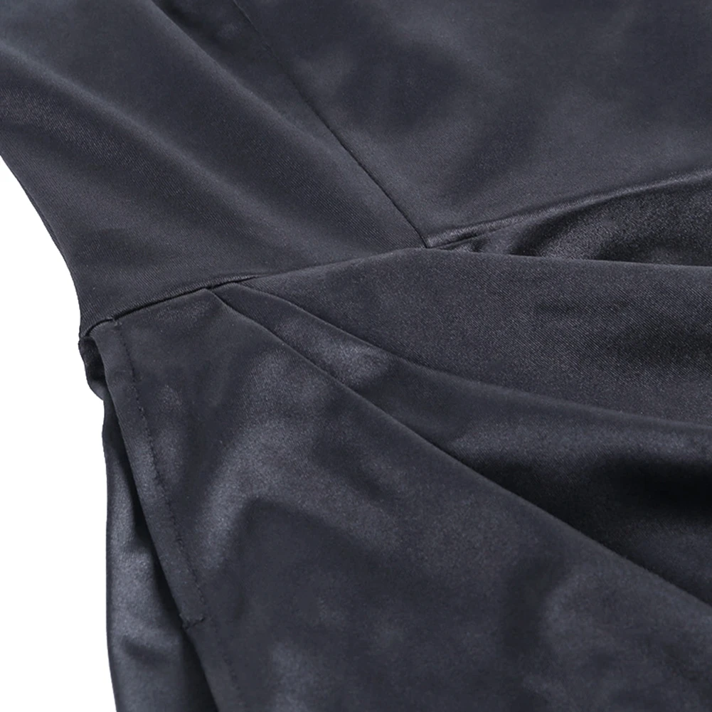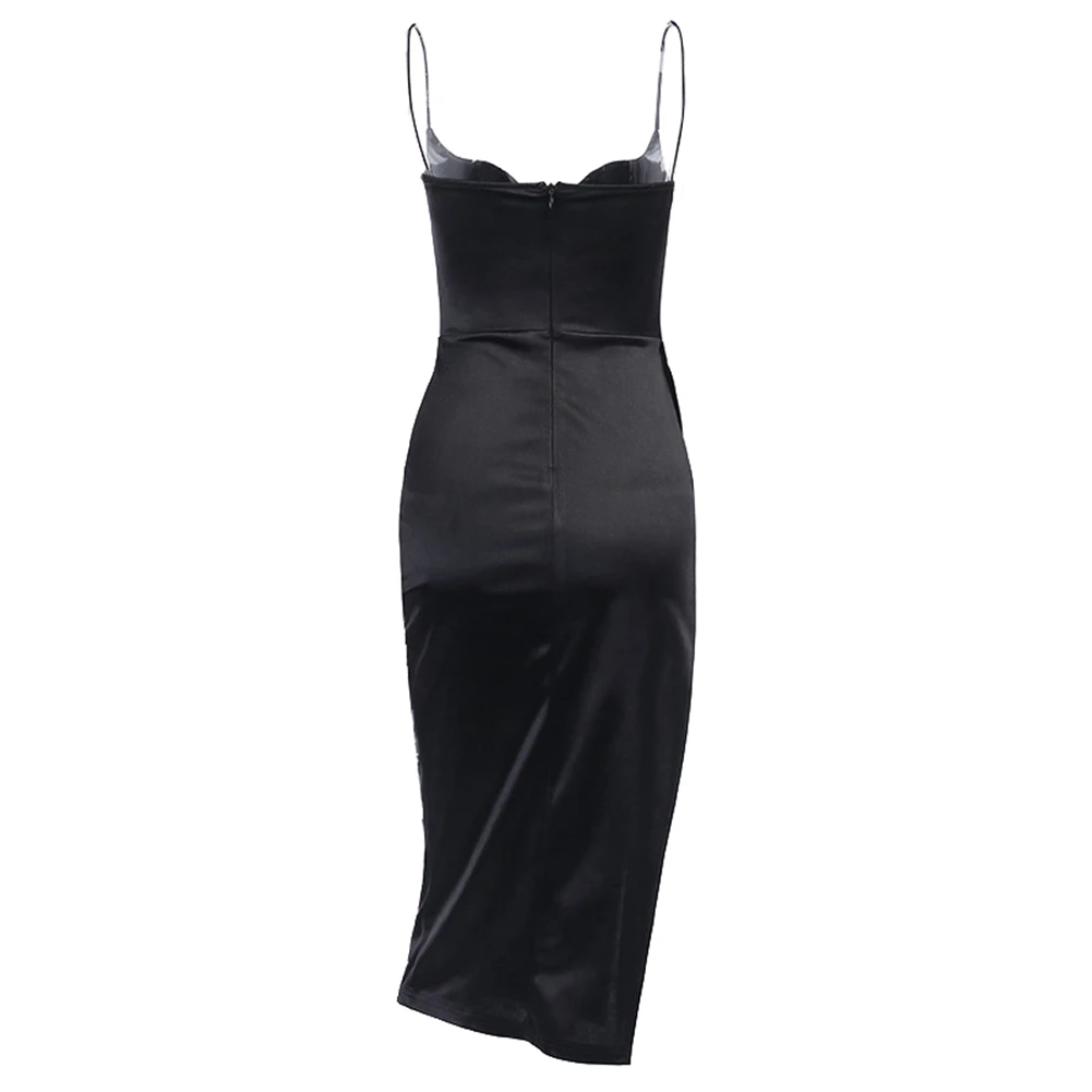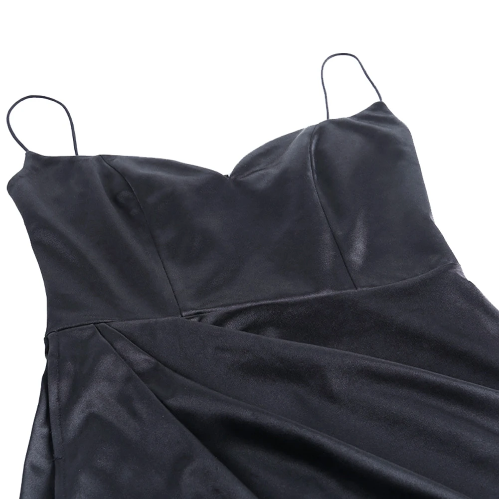 Платье женское атласное шелковое, длинное вечернее на бретелях, с V летнее платье с разрезом от бедра образным вырезом, без рукавов, черное