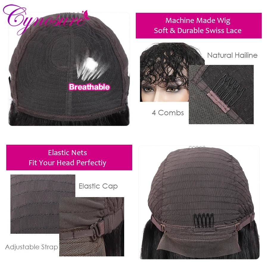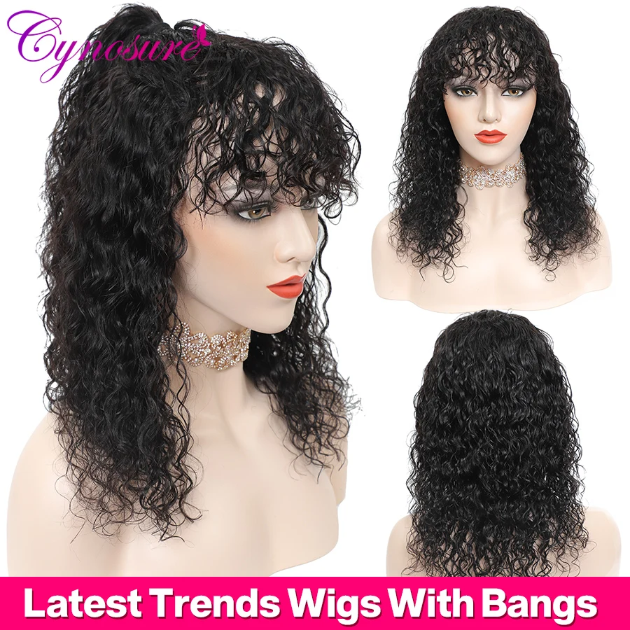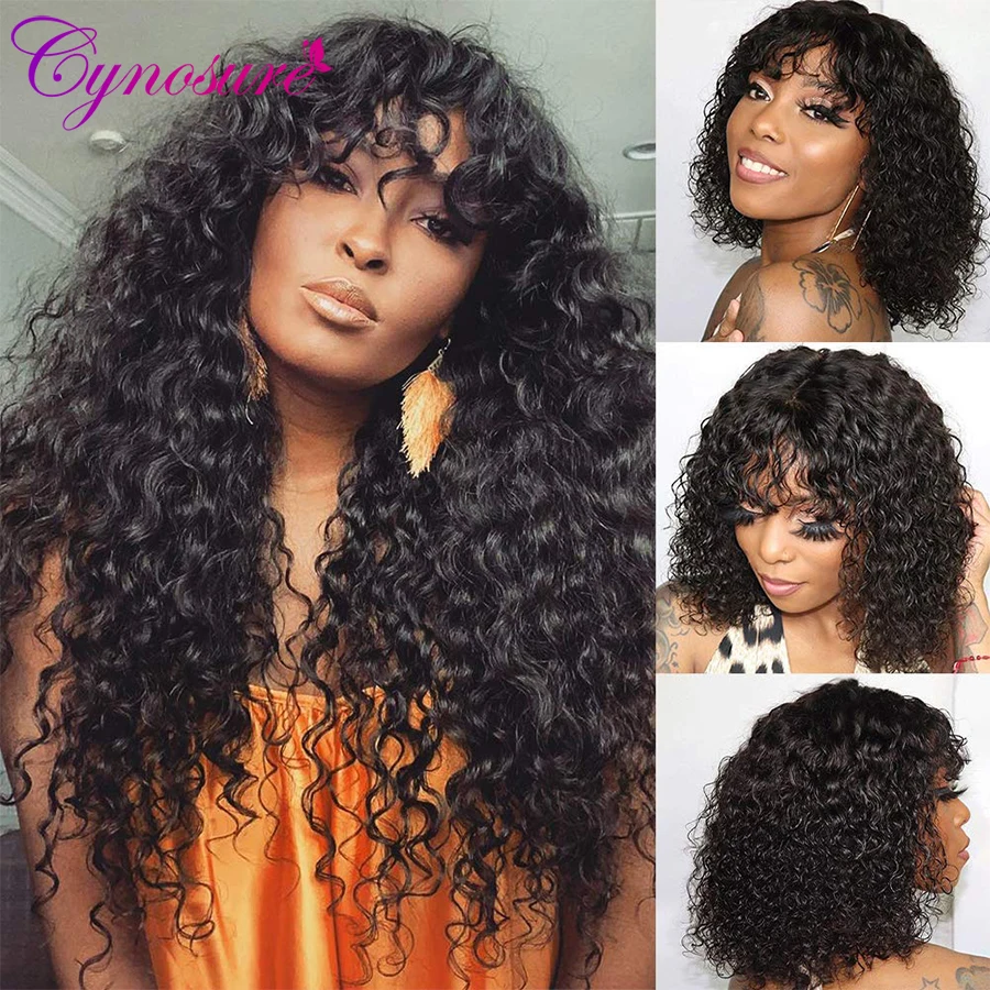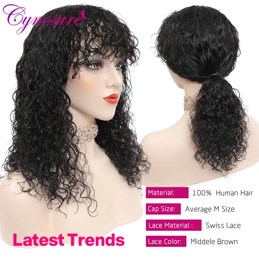 Парики Cynosure бразильские волнистые с челкой, 150% плотность, человеческие волосы, парики для чернокожих женщин, без Реми, передние парики из человеческих волос