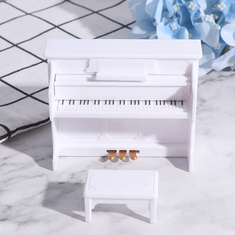 1:12 деревянный большой Рояль с моделью стула, игрушки, аксессуары, Миниатюрный белый изысканный кукольный домик, наклейки для кукольного домика