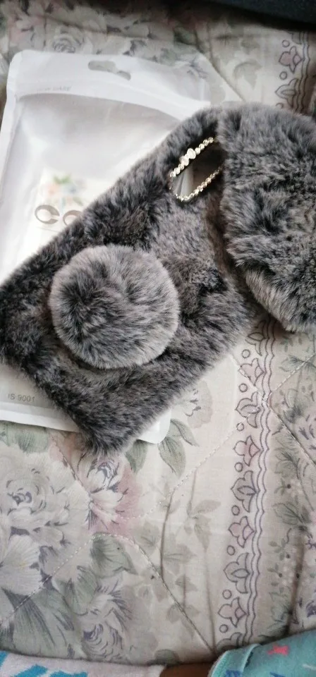 Силиконовый чехол с пушистым кроликом, плюшевый чехол для телефона ...