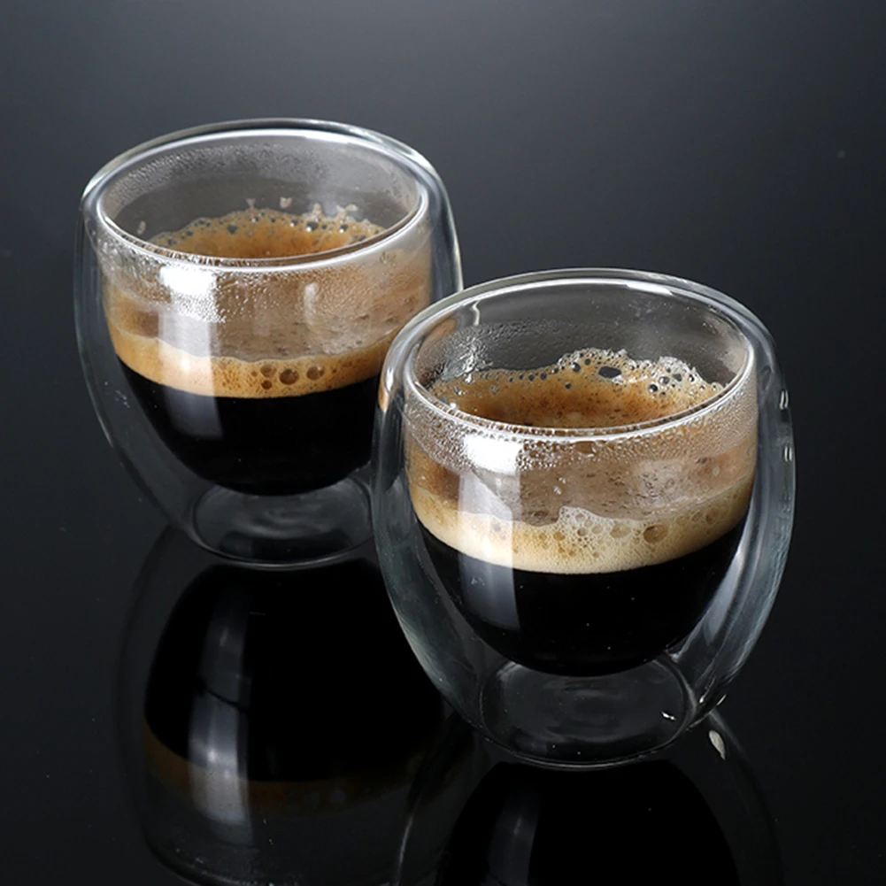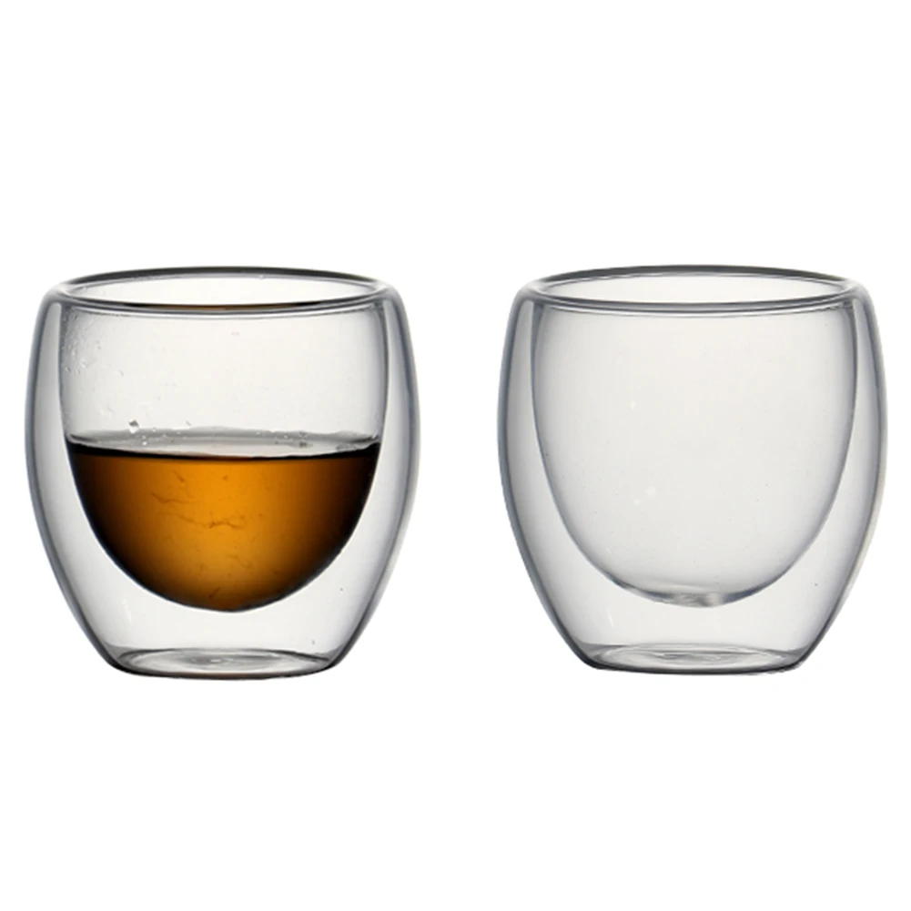 Прозрачная термостойкая стеклянная чашка, Термокружка с двойными стенками, 80 мл, для горячего кофе, чая, молока, воды, 6 шт.